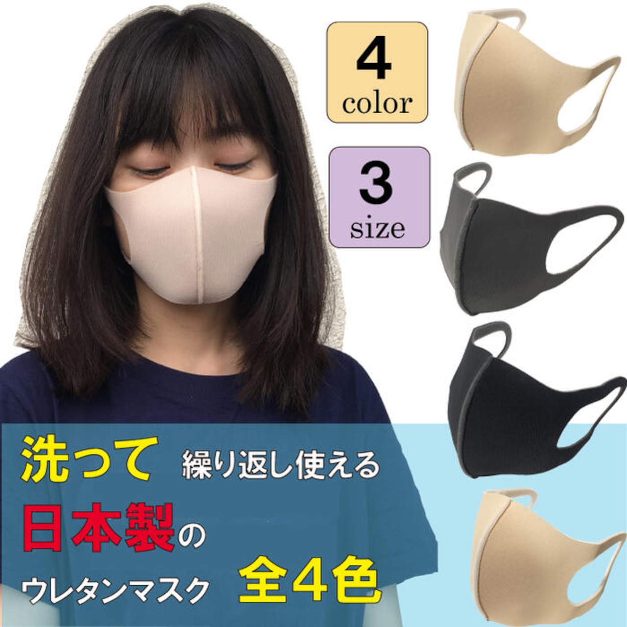 在庫限りで販売終了 【日本製】 ウレタン マスク 洗える 制菌 抗菌 ブラック グレー ベージュ ピンクベージュ 大きめ 小さめ 子ども 個包装 効果 裏表 オシャレ