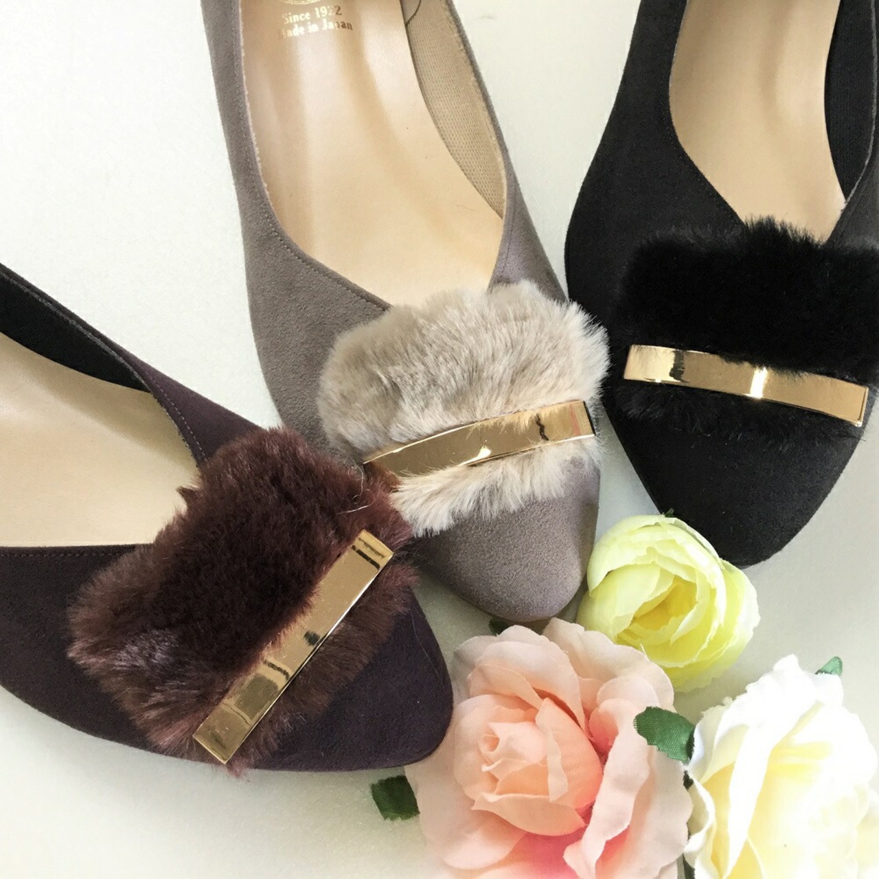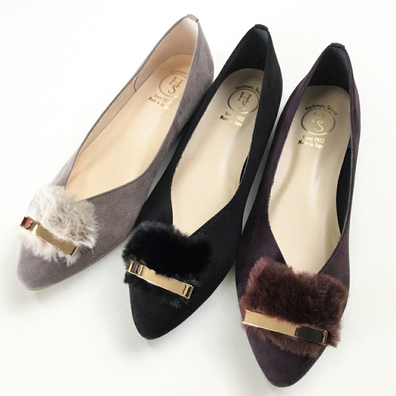 【日本製】 HS ファー スエード パンプス 1cm ヒール ベージュ ブラック