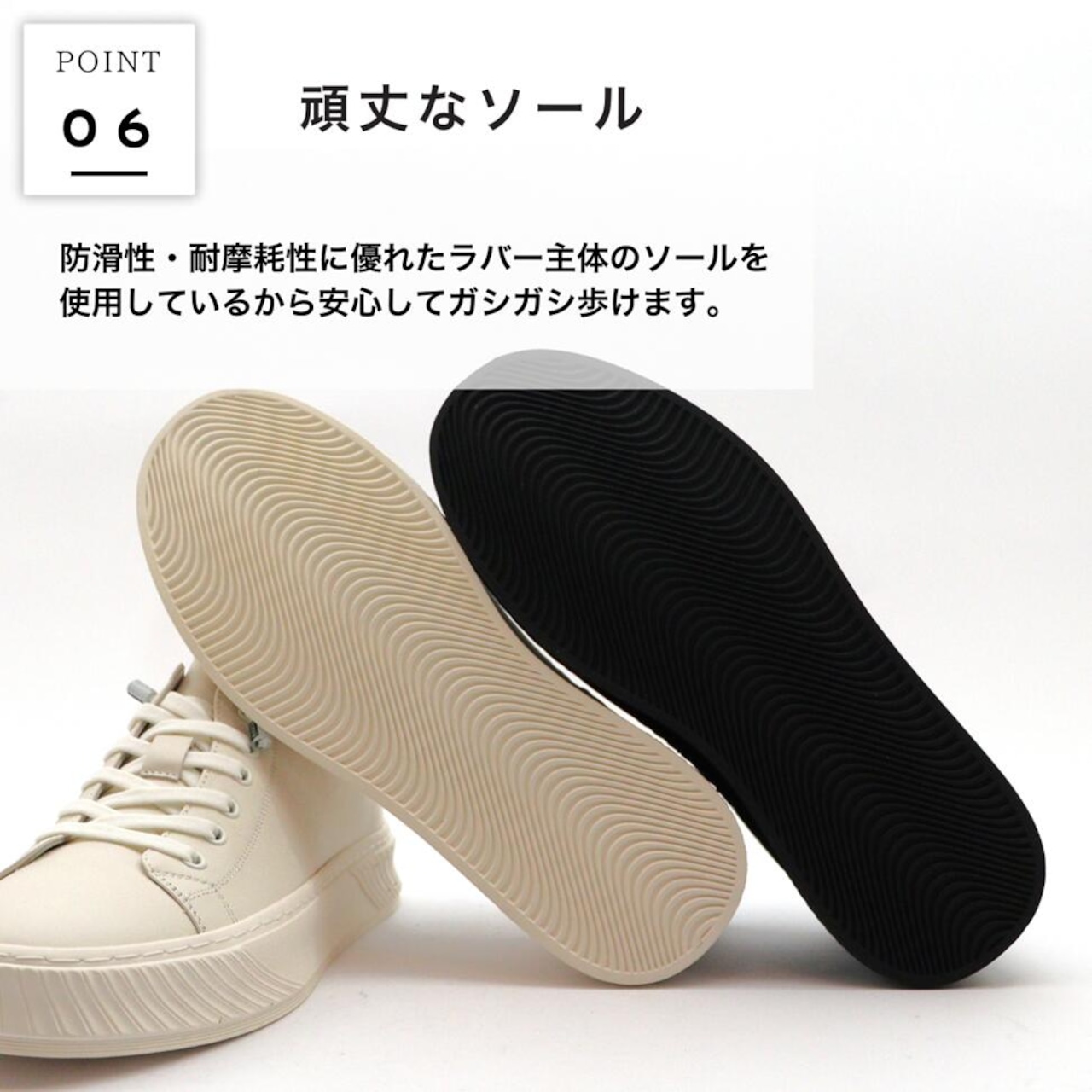 ・防滑性、耐摩耗性に優れたラバー主体のソールを使用。ガシガシ歩けます