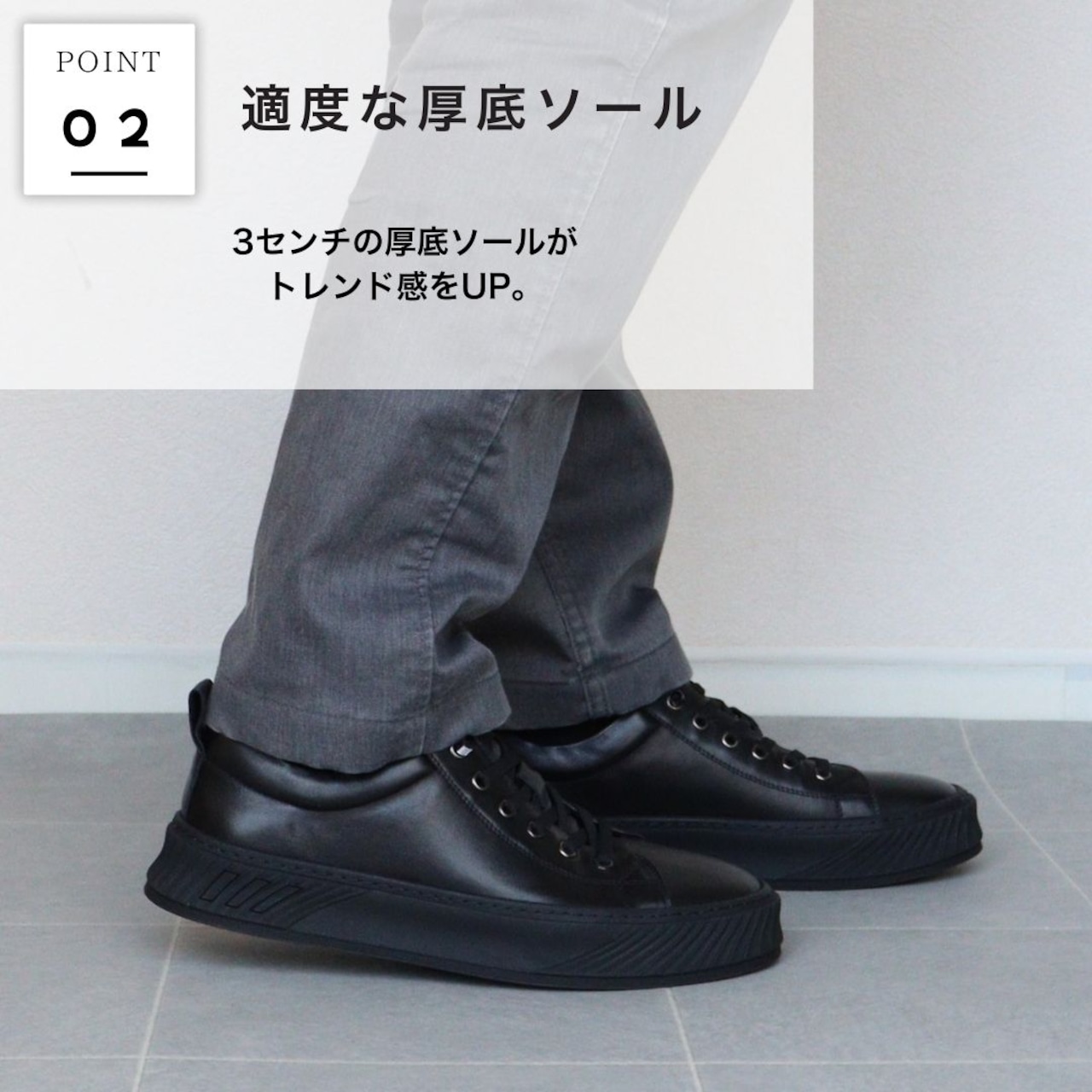 ・3cmの厚底ソールがトレンド感をアップ