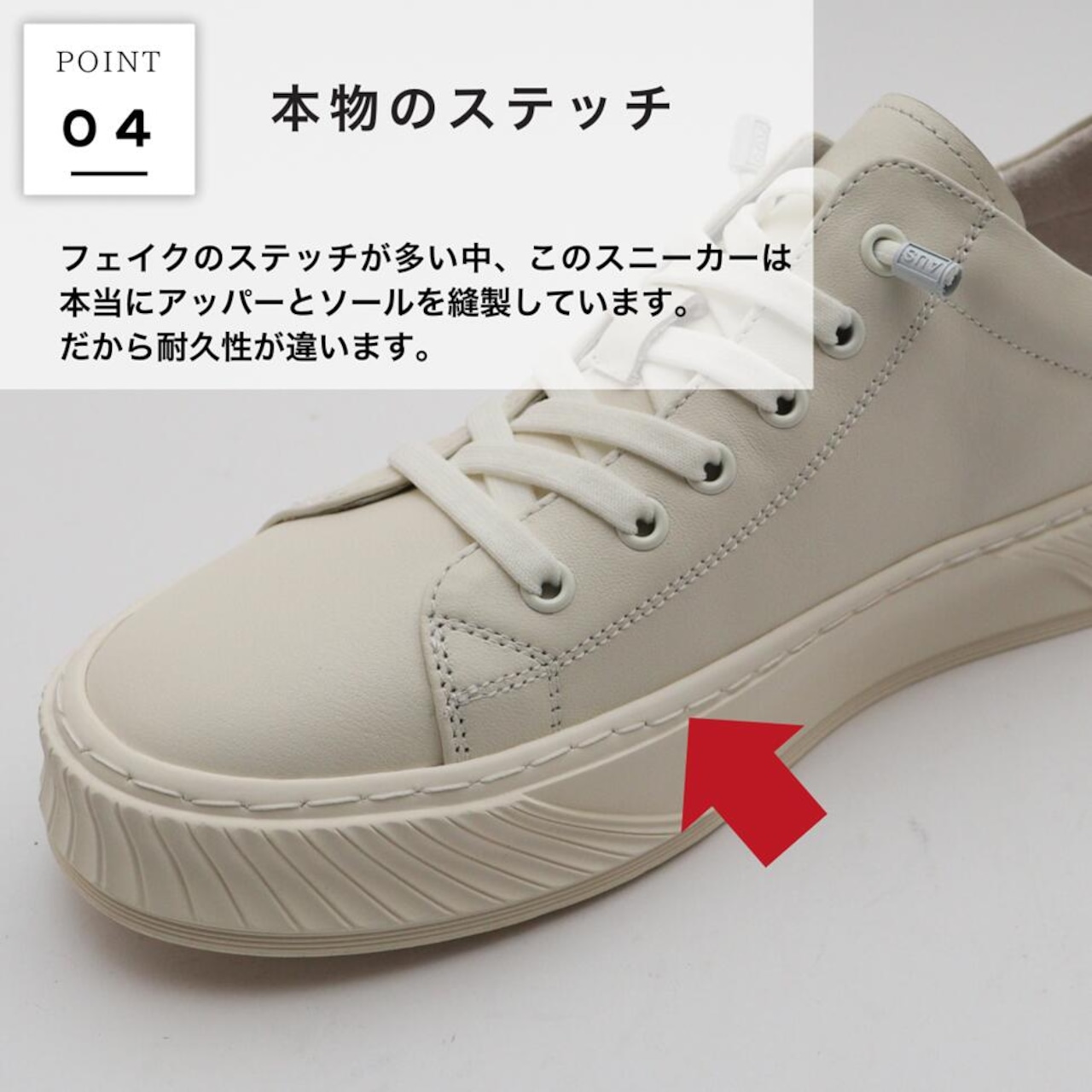 ・アッパーとソールを縫製しており、耐久性も抜群です