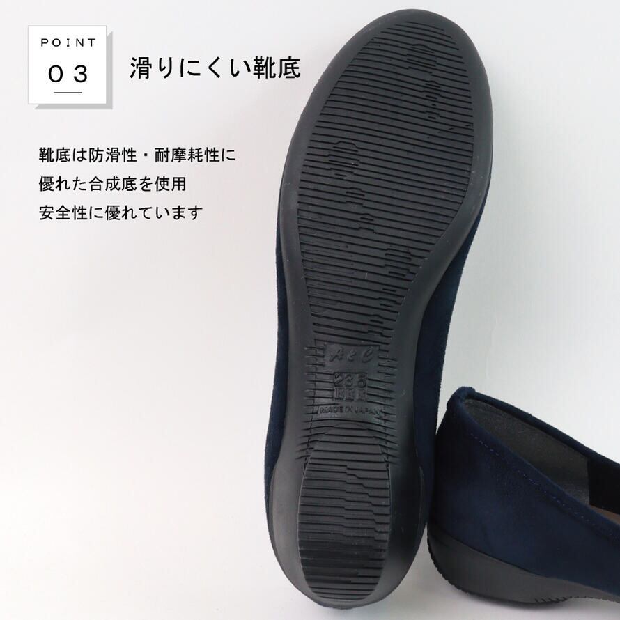 【日本製】 フラワーモチーフスエードパンプス 3cm ヒール3センチ 3E 外反母趾 ブラック ぺたんこ 黒 痛くない グレー ネイビー フラットパンプス スエードパンプス