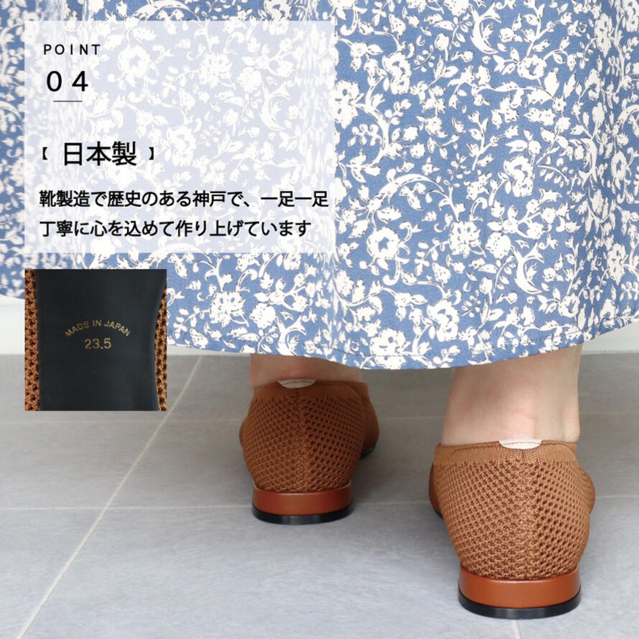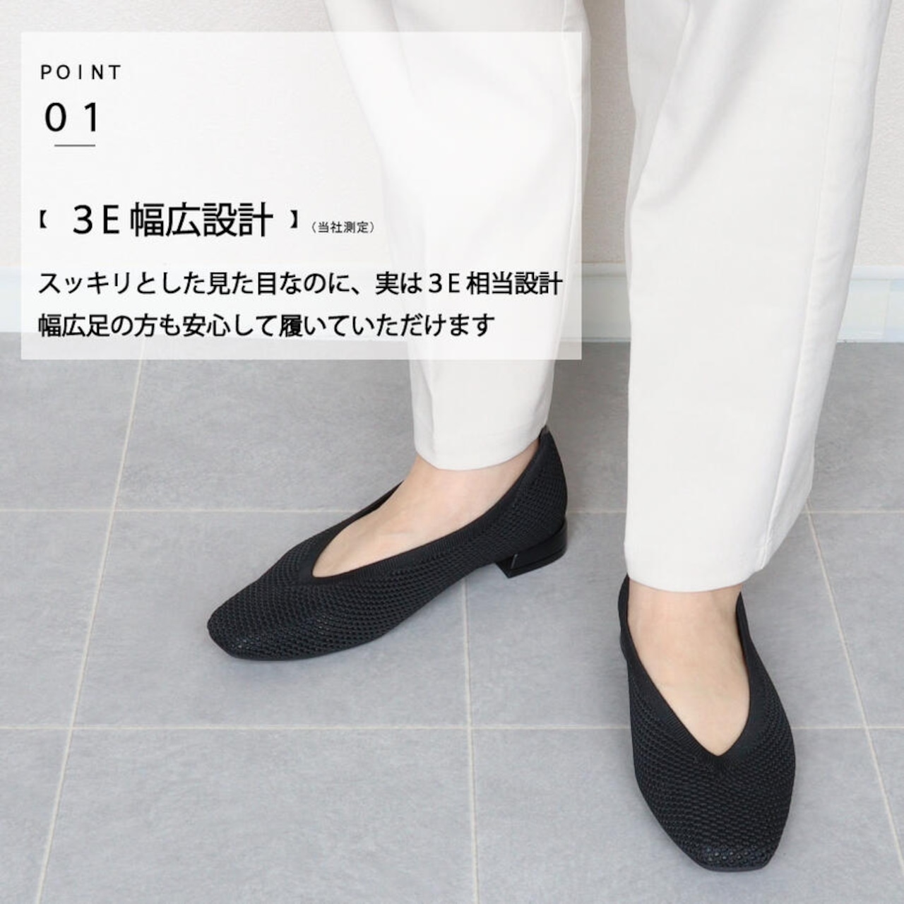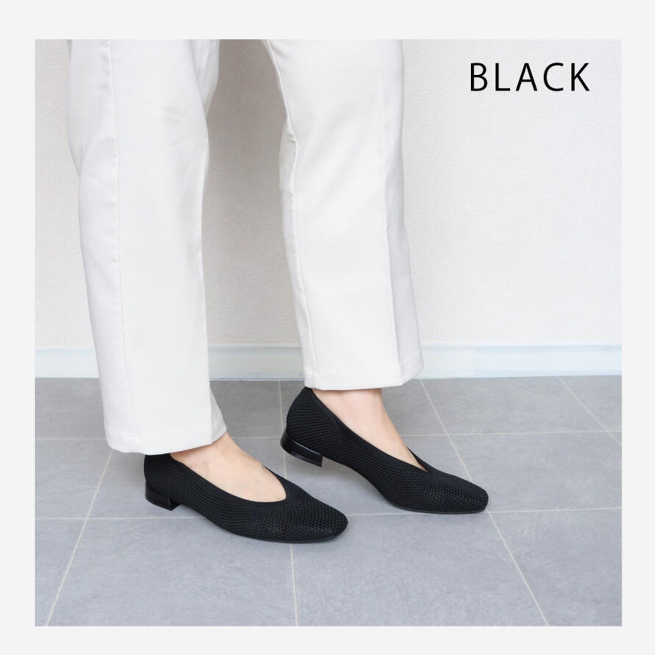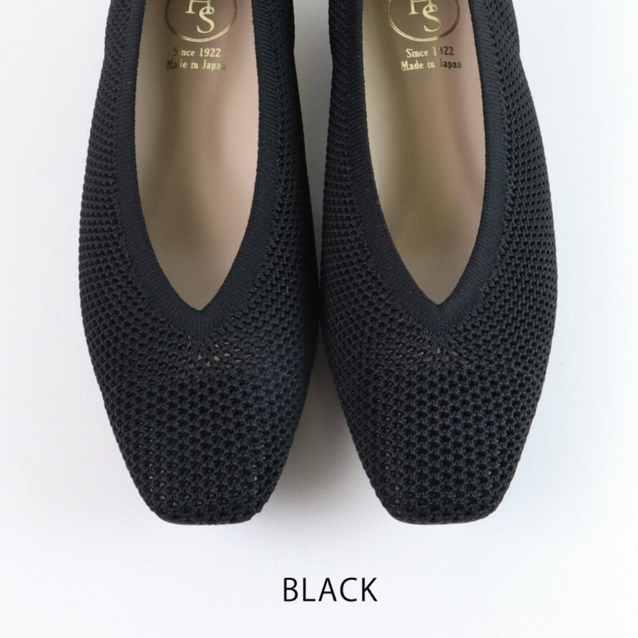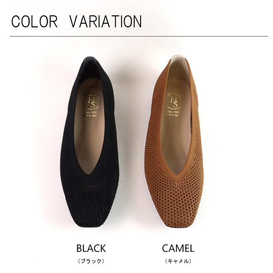 【日本製】 HS Vカット メッシュ フラット パンプス ブラック 3E 相当 フラットシューズ 歩きやすい レディース ニット 黒