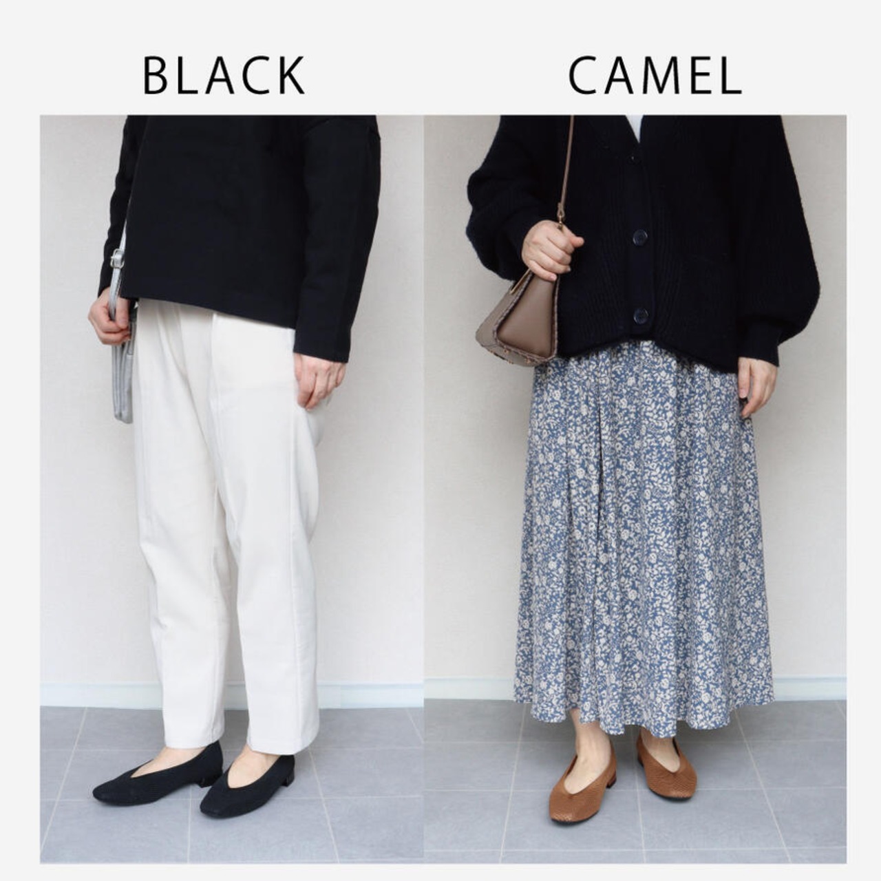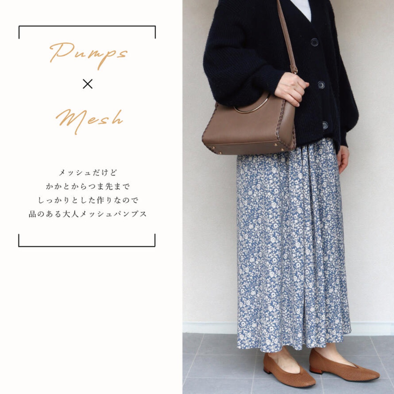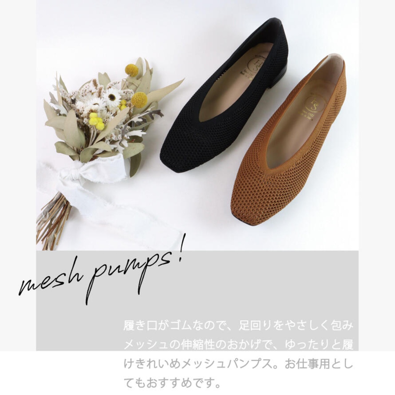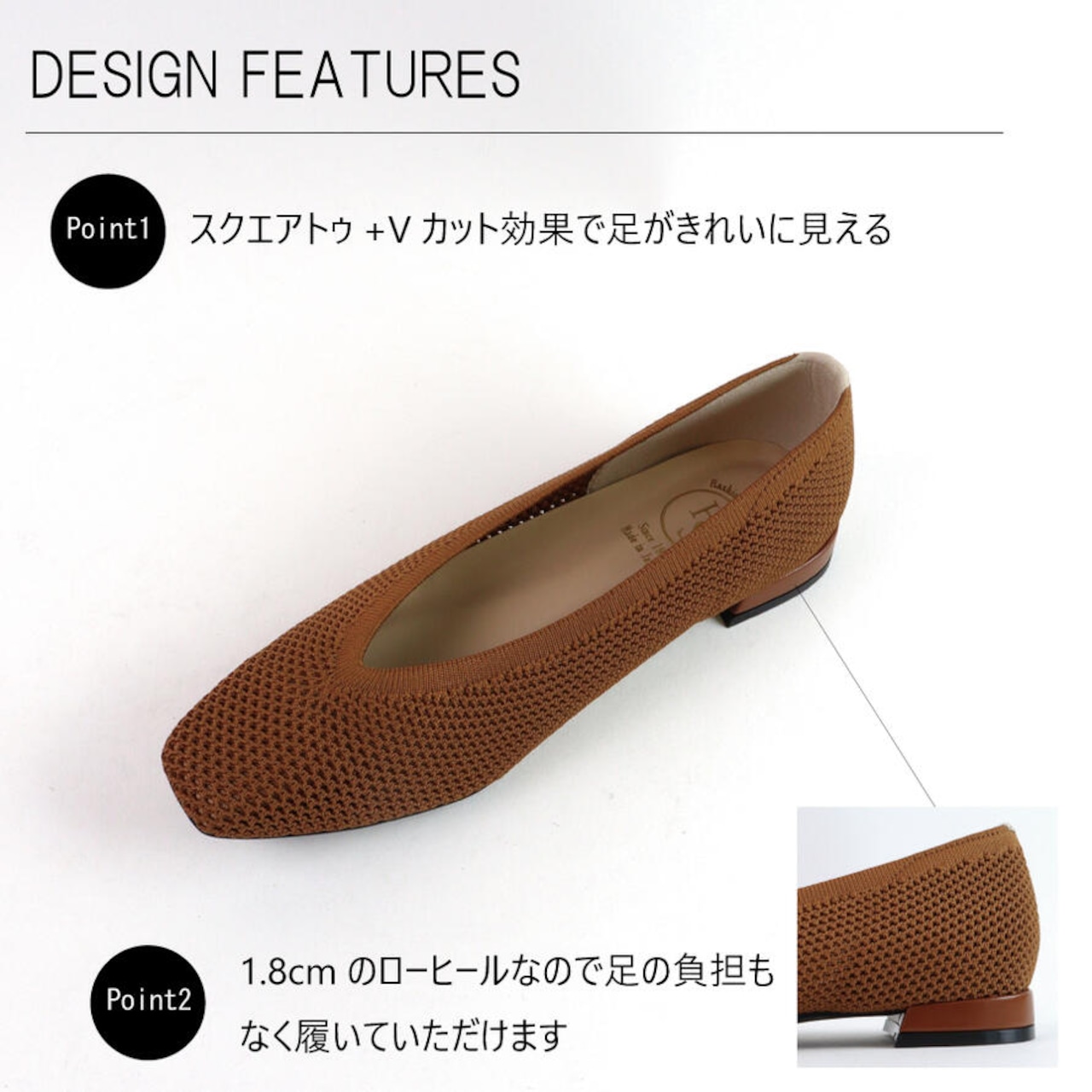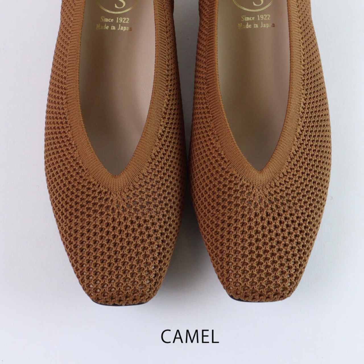 【日本製】 HS Vカット メッシュ フラット パンプス ブラック 3E 相当 フラットシューズ 歩きやすい レディース ニット 黒