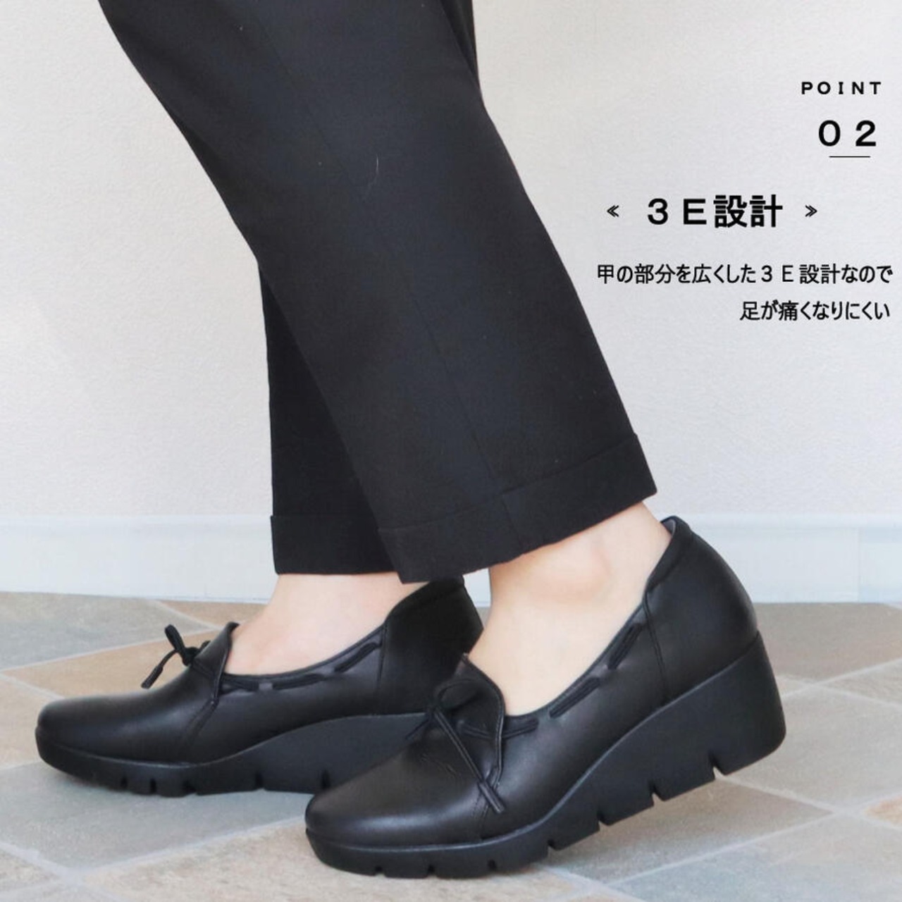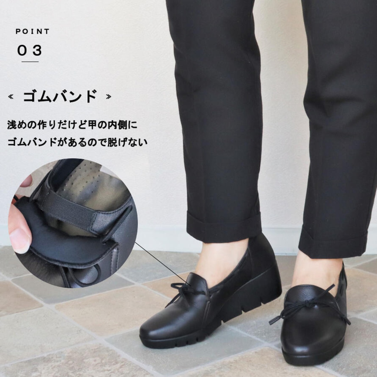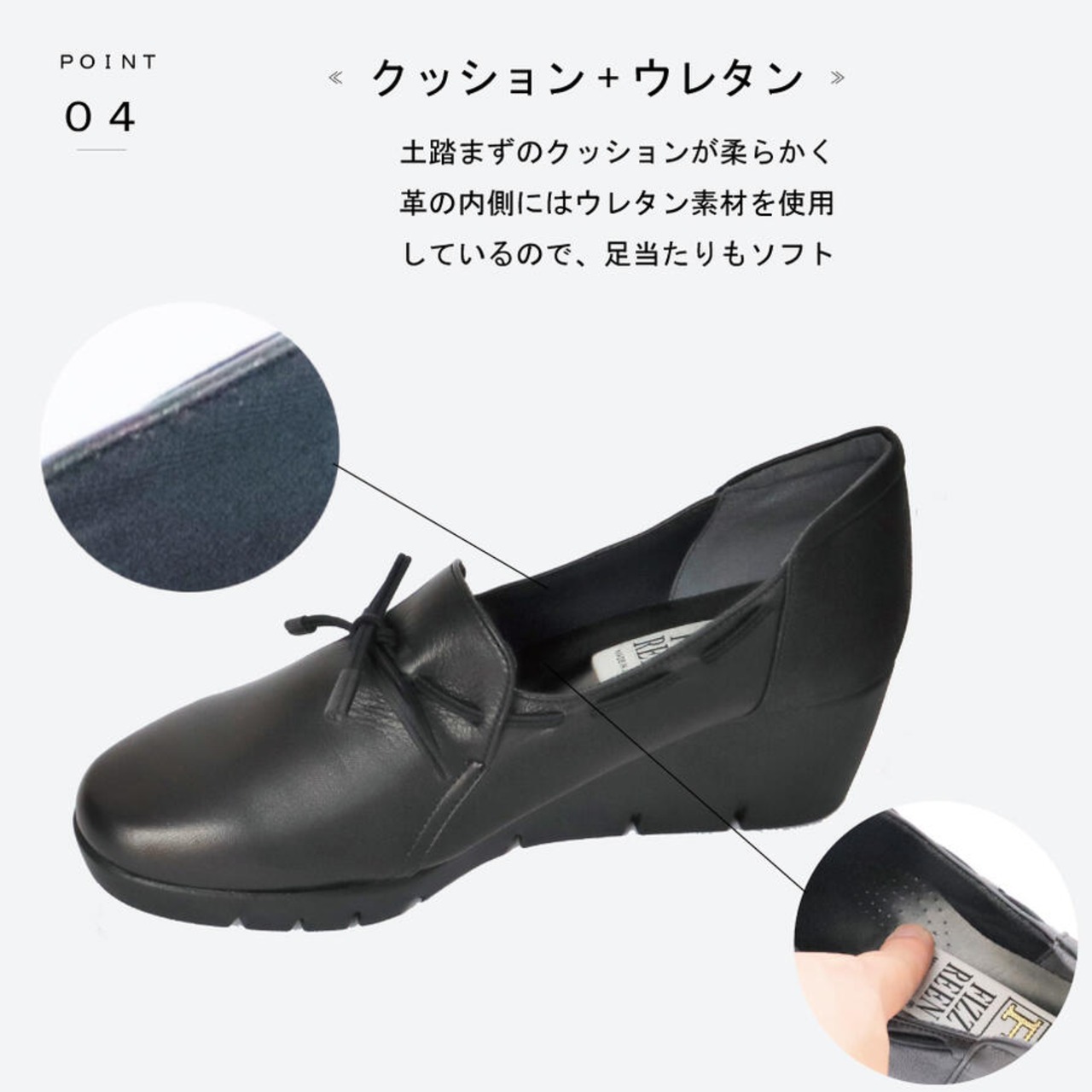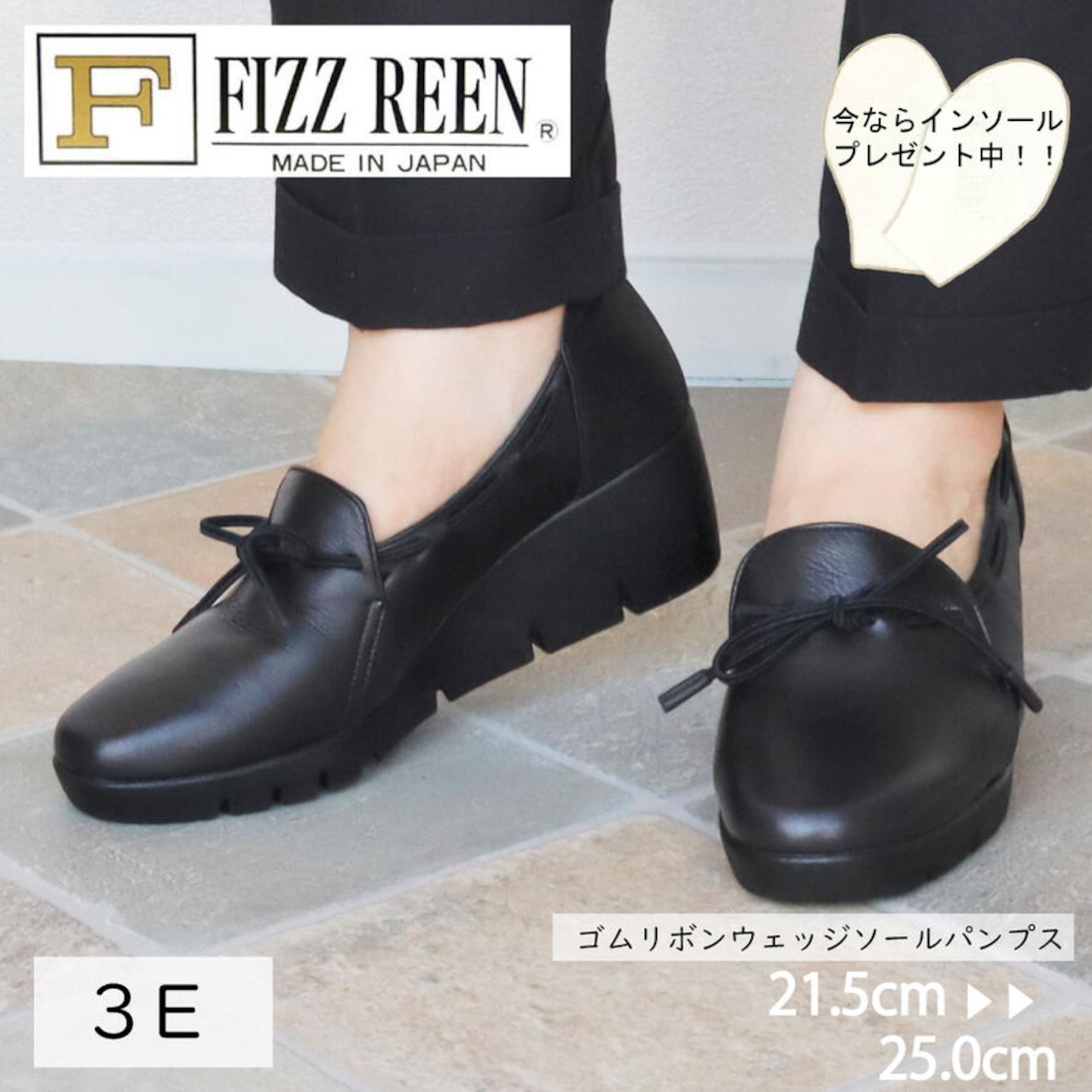 【FIZZ REEN】 厚底 リボン ローファー レディース 40代 痛くない 本革 おしゃれ 靴 黒 ヒール 5センチ 50代 甲高 幅広 外反母趾 パンプス 歩きやすい