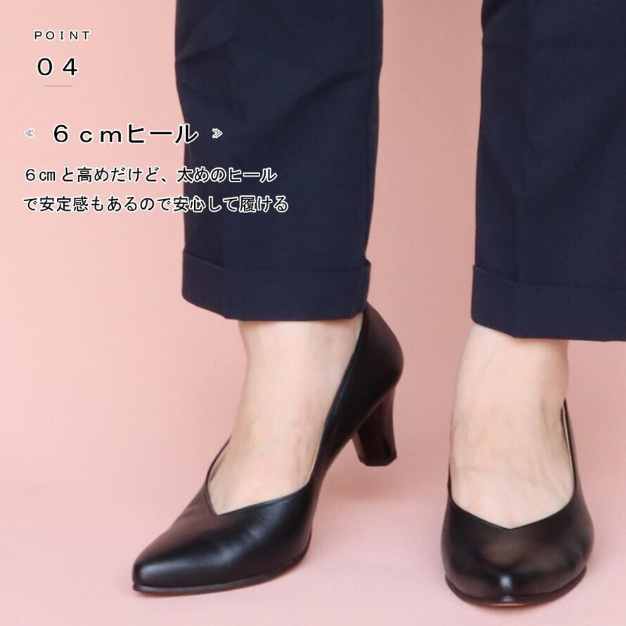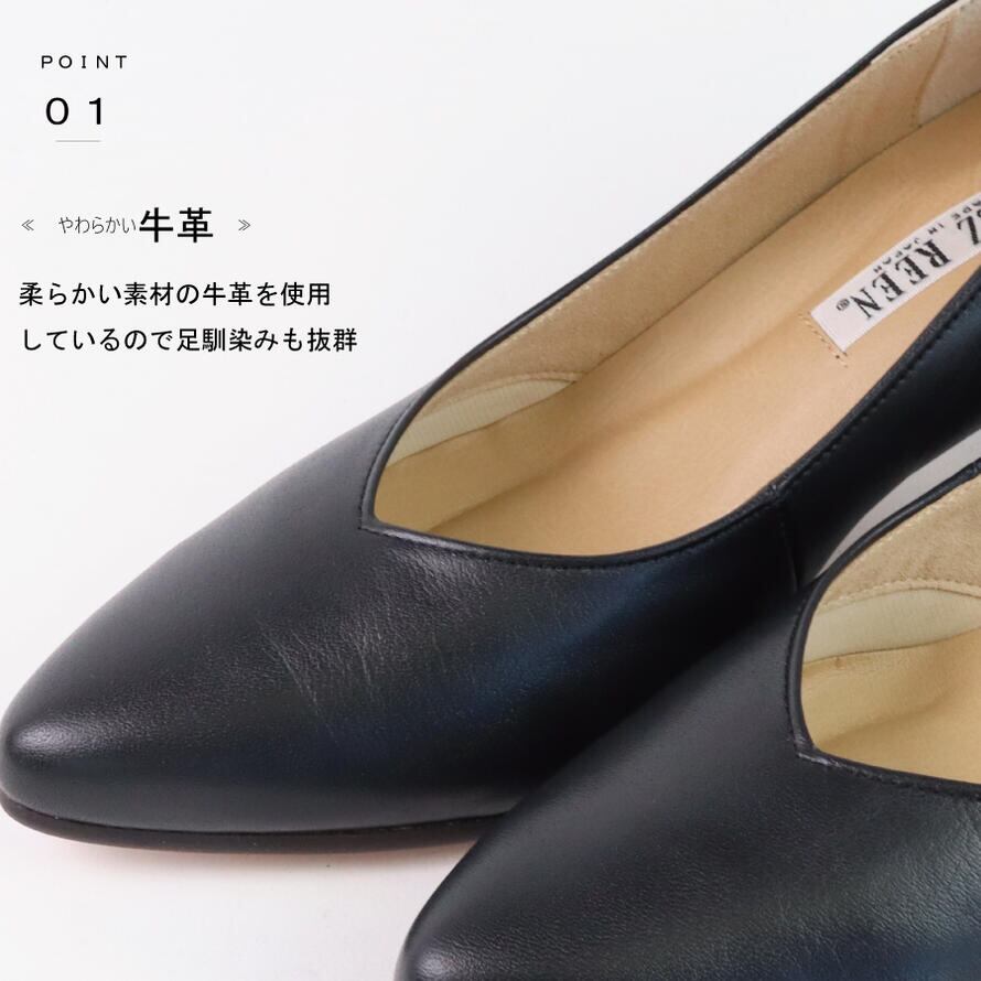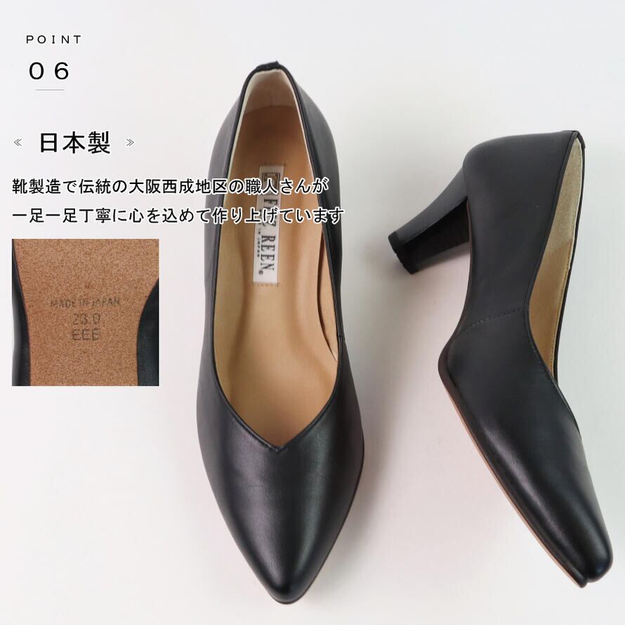 【FIZZ REEN】 Vカット フォーマル パンプス 40代 3E 痛くない 本革 おしゃれ 靴 黒 ヒール 3センチ 50代 甲高 幅広 外反母趾 歩きやすい