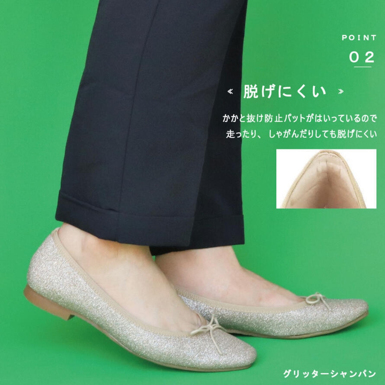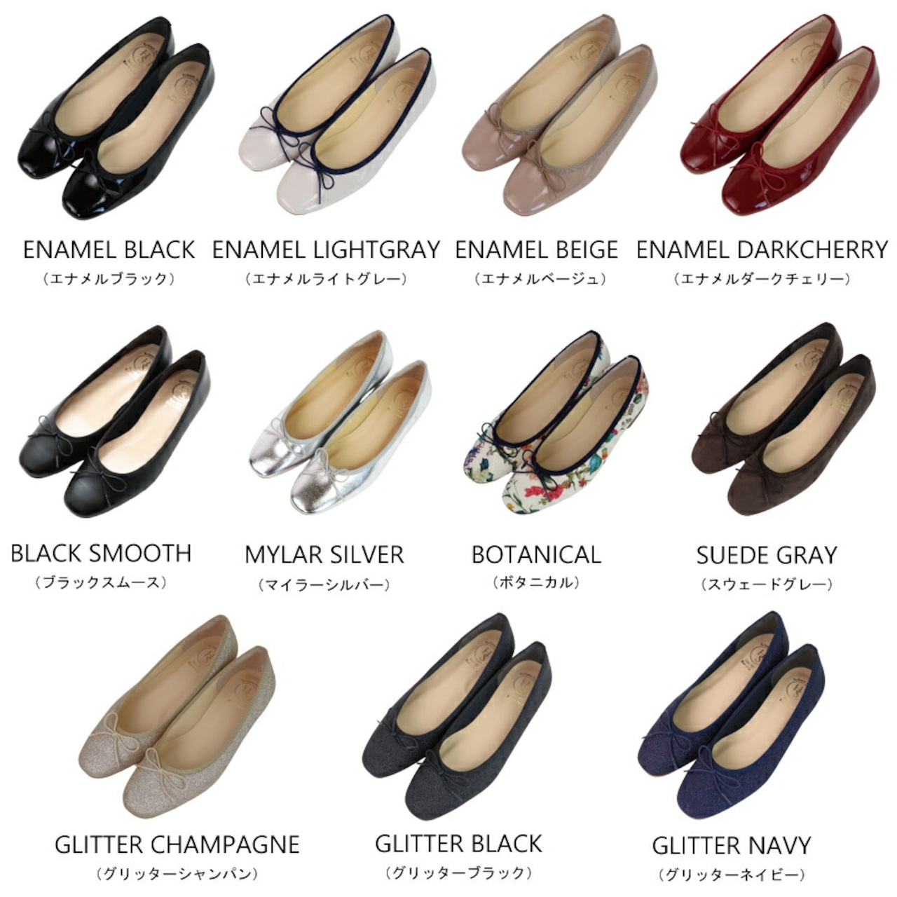 ・シンプルな作りでカラーバリエーションも多く、履く人を選ばない万能バレエシューズ
