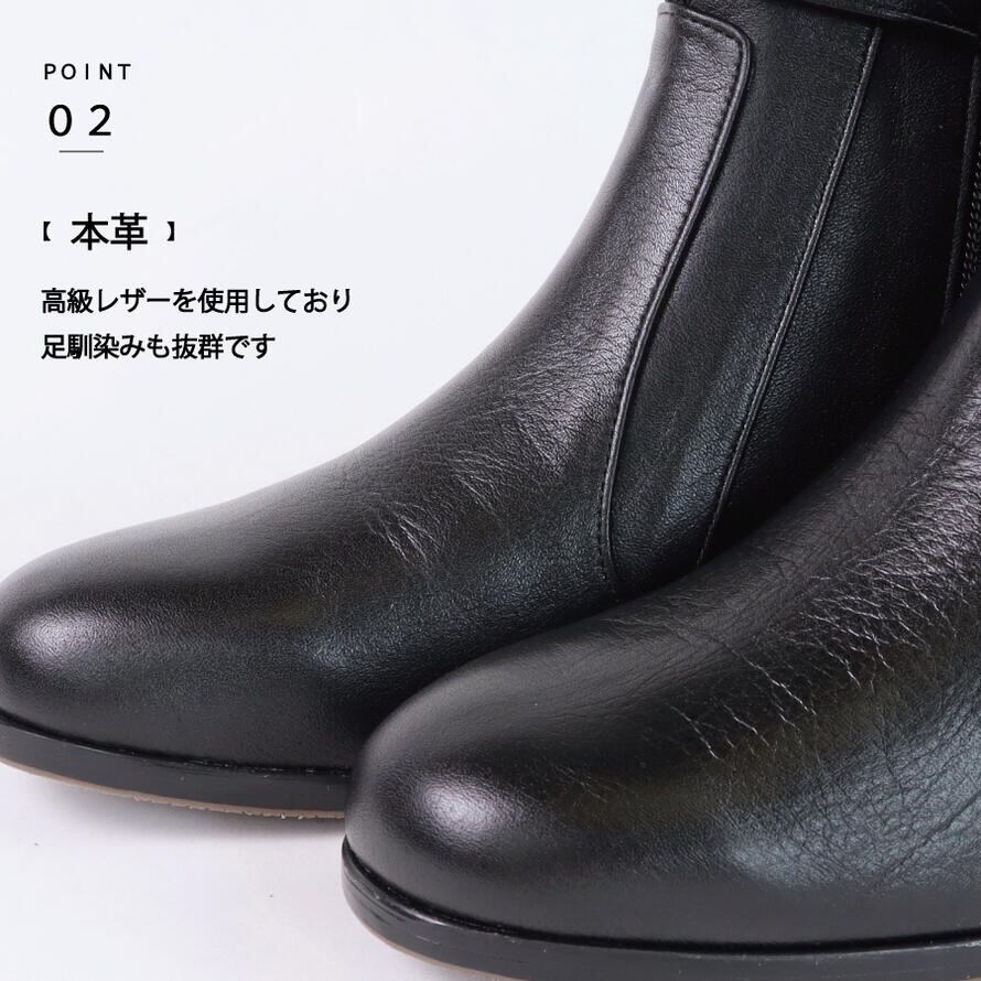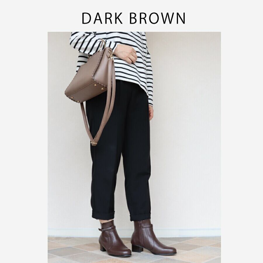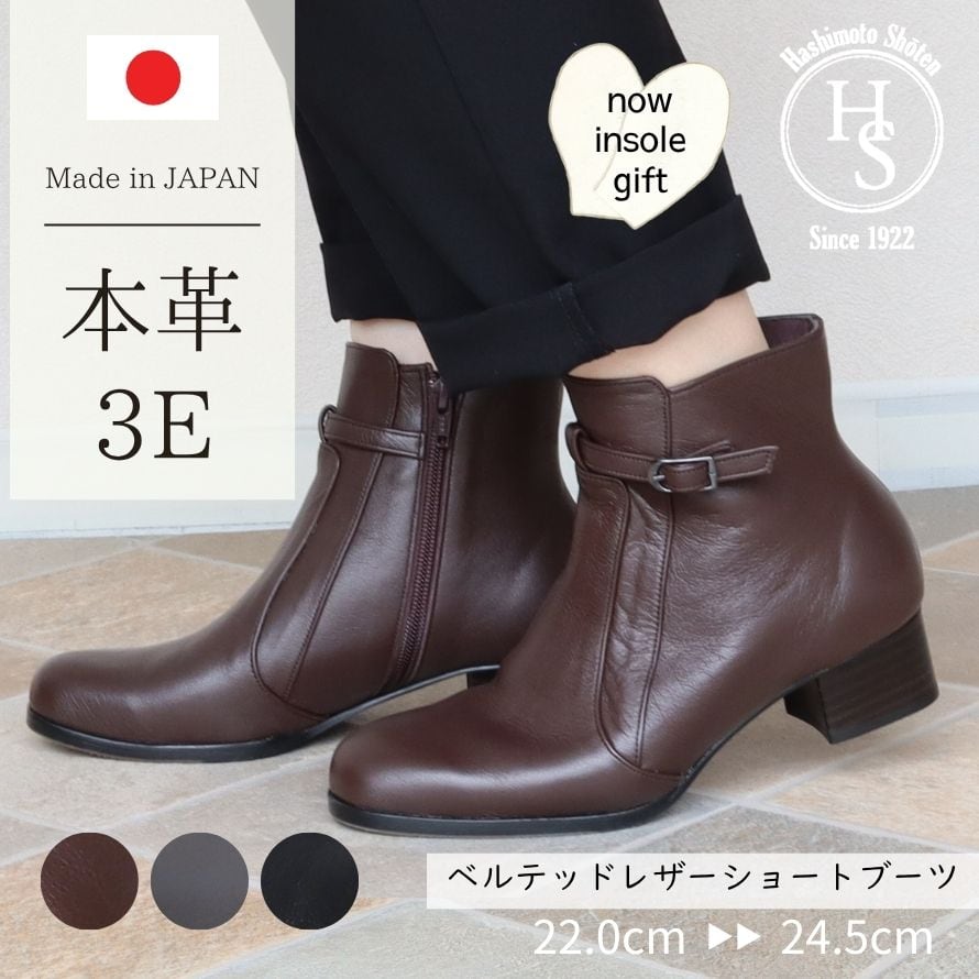 【日本製】 HS ベルテッド レザー ショートブーツ レディース 本革 ブラック 4cm ヒール4センチ 3E ファスナー チャック ブーツ