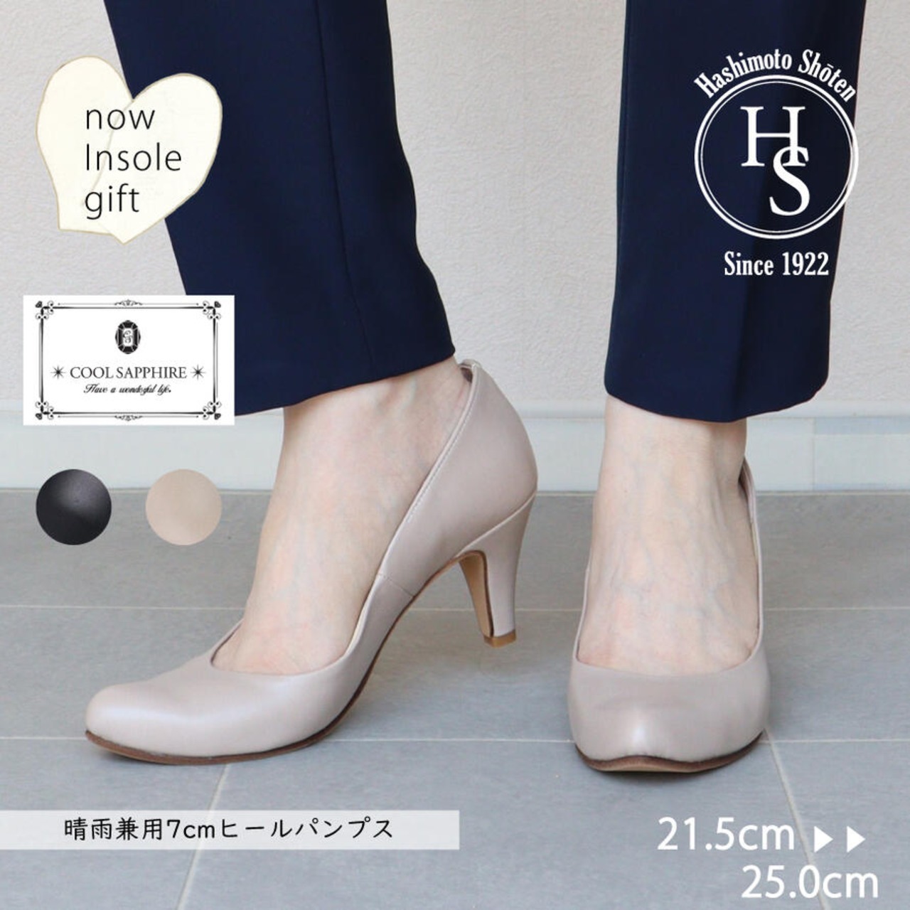 【日本製】COOL SAPPHIRE 晴雨兼用 7cmヒール パンプス 痛くない 柔らかい ベージュ ブラック ハイヒール 歩きやすい 幅広 クールサファイヤ 防水 撥水