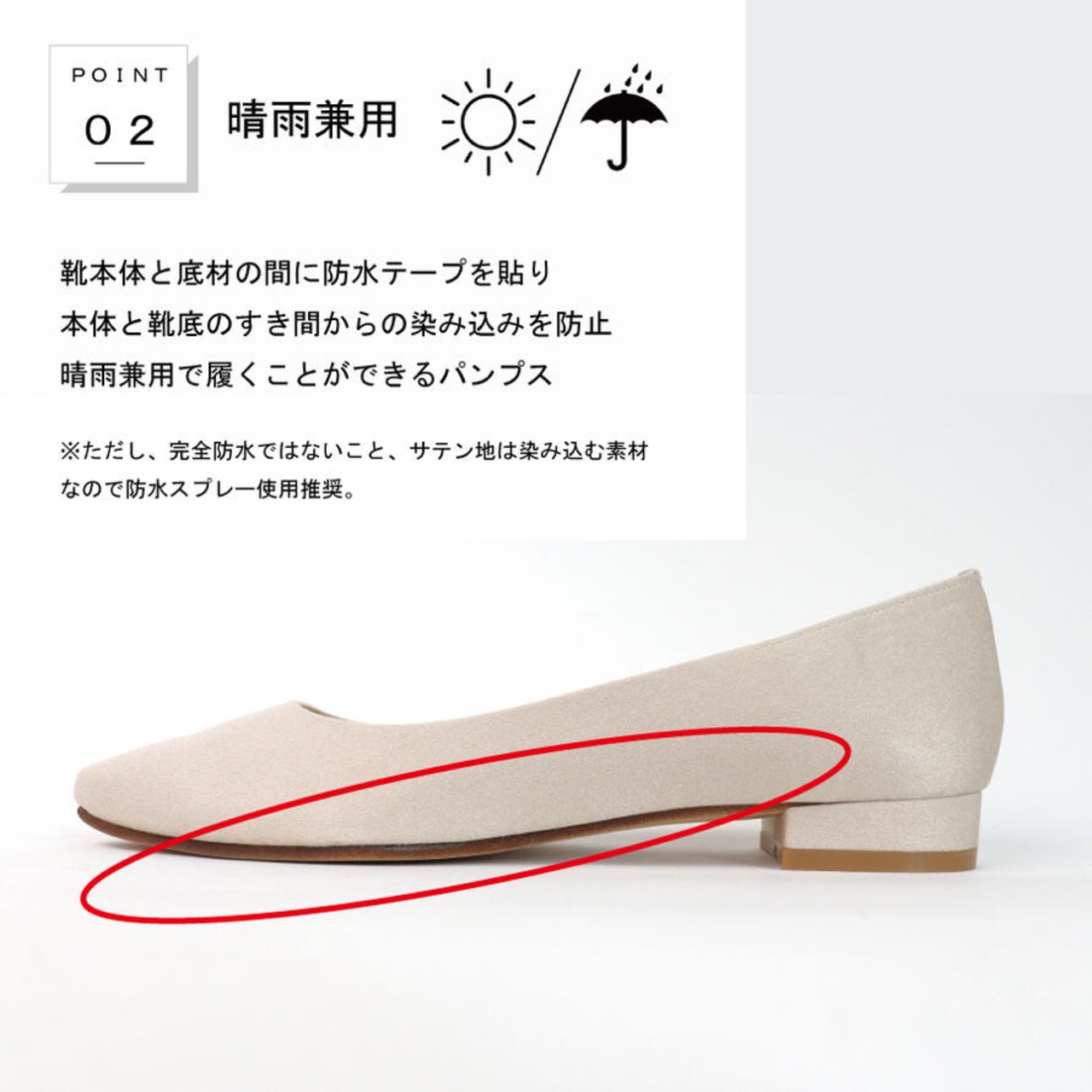 【日本製】COOL SAPPHIRE サテン フラットパンプス 2cmヒール パンプス 痛くない 柔らかい ベージュ ブラック ローヒール 歩きやすい 幅広 クールサファイヤ 防水 撥水
