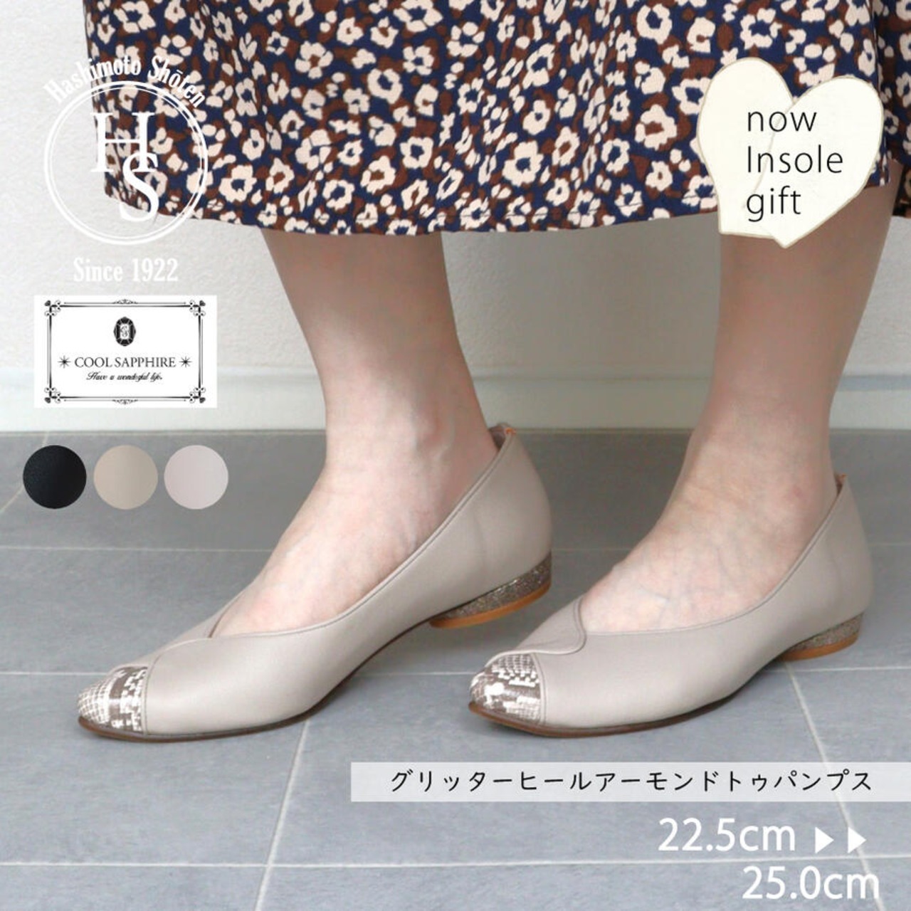 【日本製】COOL SAPPHIRE アーモンドトゥ フラットパンプス 2cmヒール パンプス 痛くない 柔らかい ベージュ ブラック ローヒール 歩きやすい 幅広 クールサファイヤ ぺたんこ