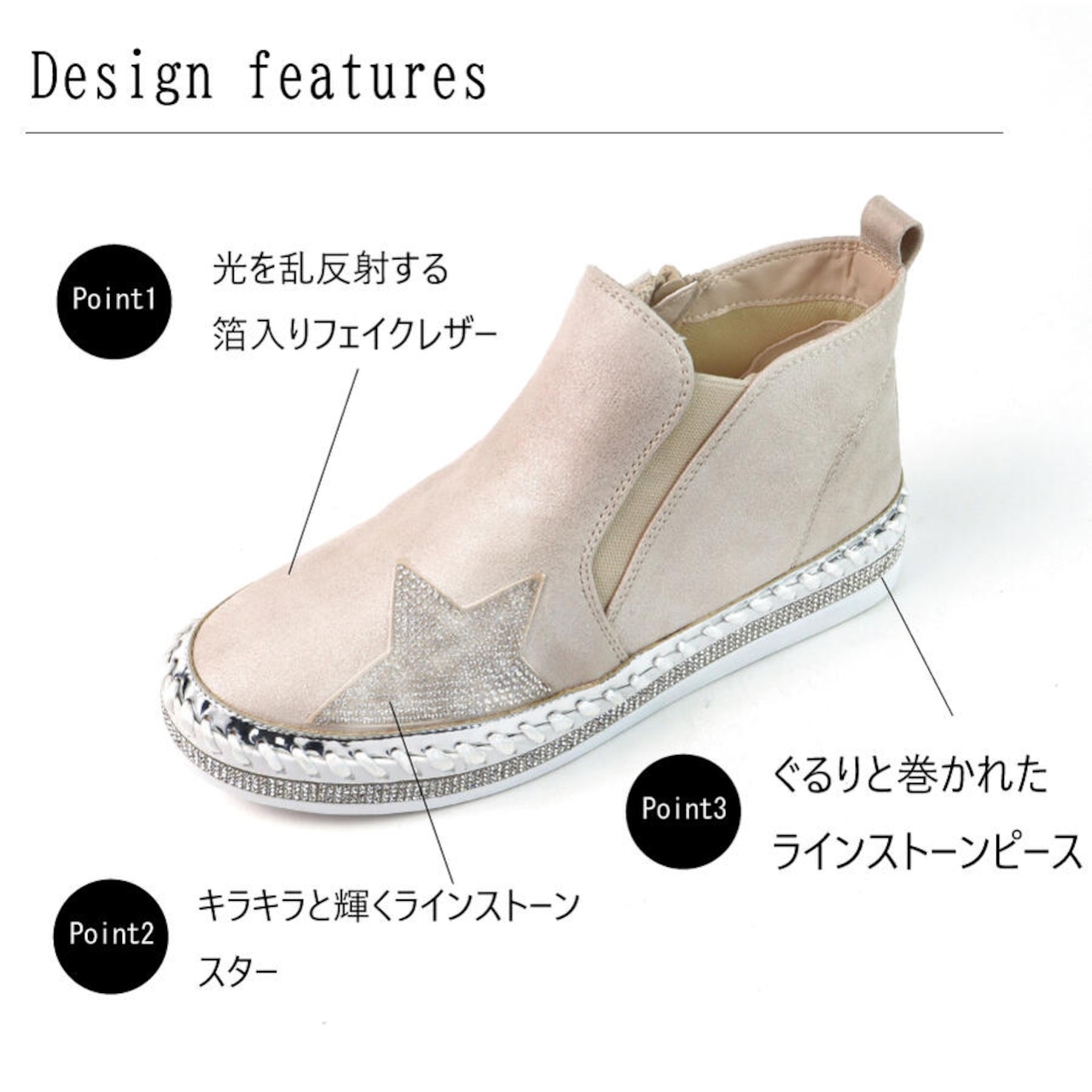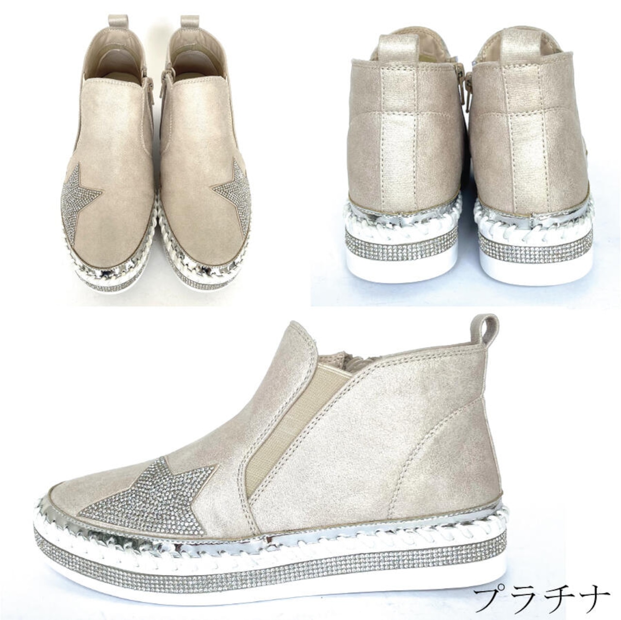【MUUM】 キラキラ ハイカット スニーカー レディース 厚底 40代 おしゃれ ひもなし 合成皮革 靴 黒 白 ブラック ヒール 3センチ 50代 グリッター ラインストーン