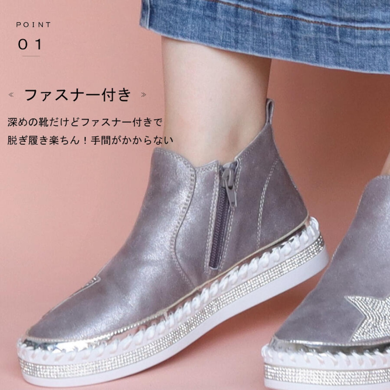 ・ファスナー付きで脱ぎ履きがらくらく