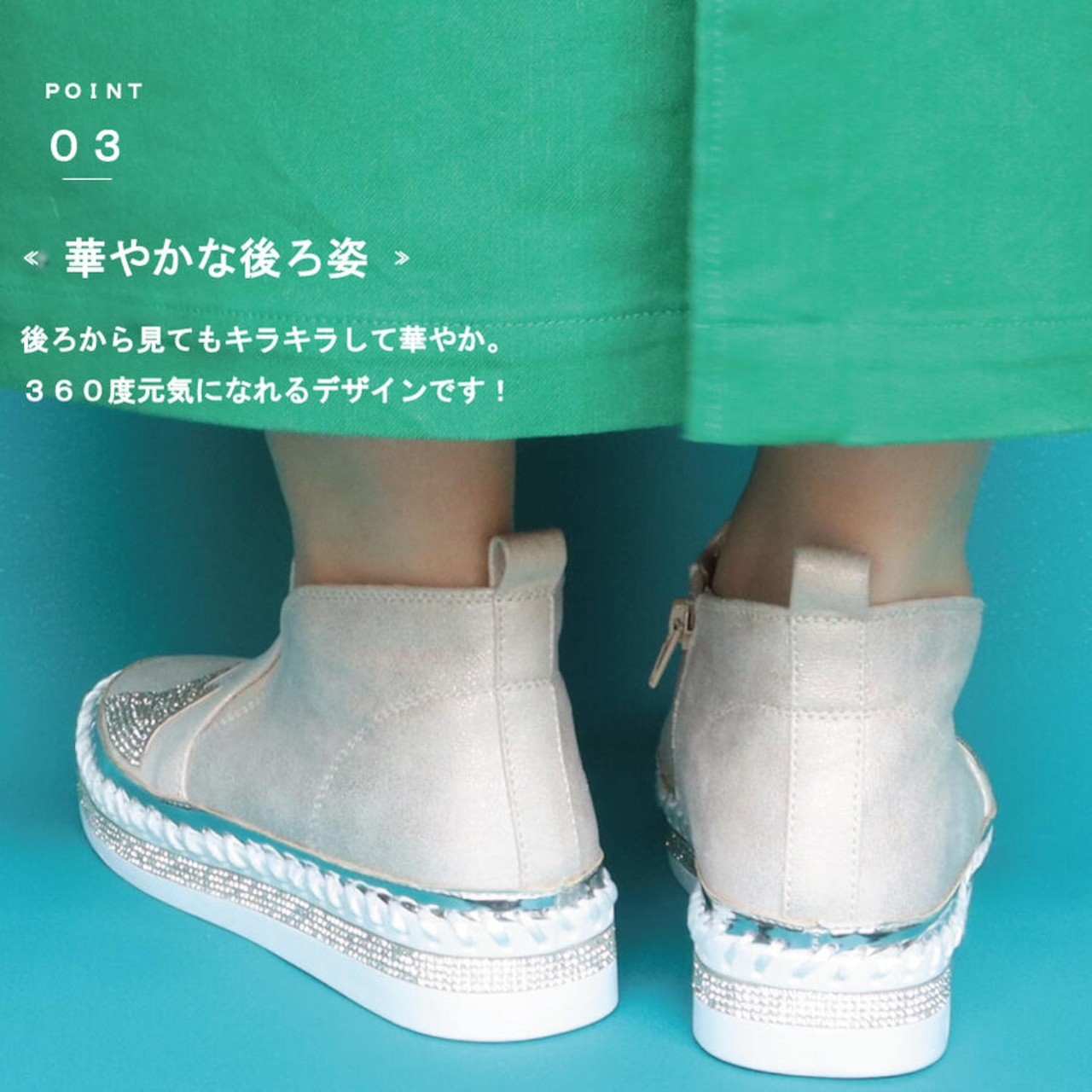・後ろから見てもキラキラしていて360度元気になれるデザイン