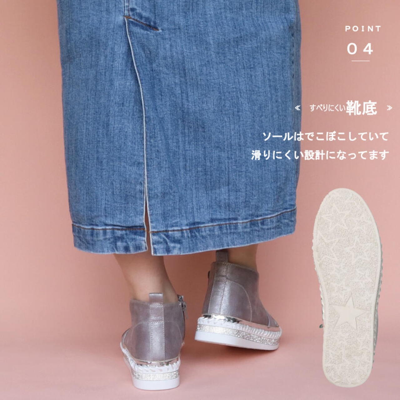 ・ソールはでこぼこしていて滑りにくい設計になってます