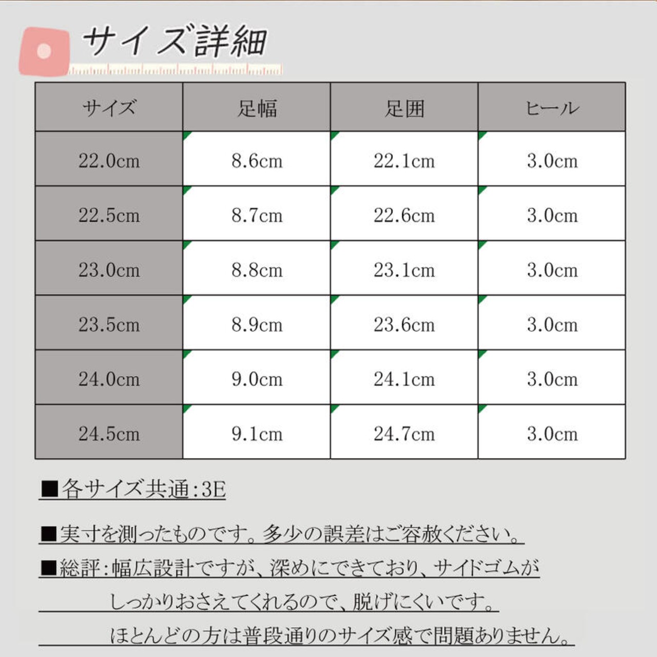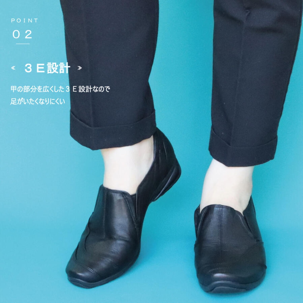 ・ゆったり3E設計なので足が痛くなりにくい