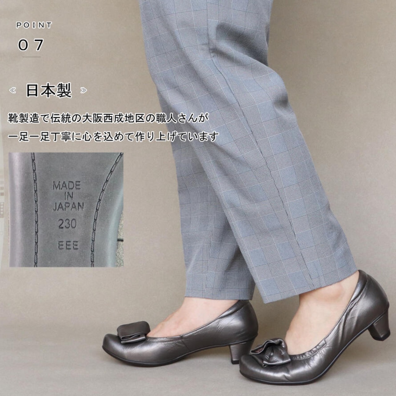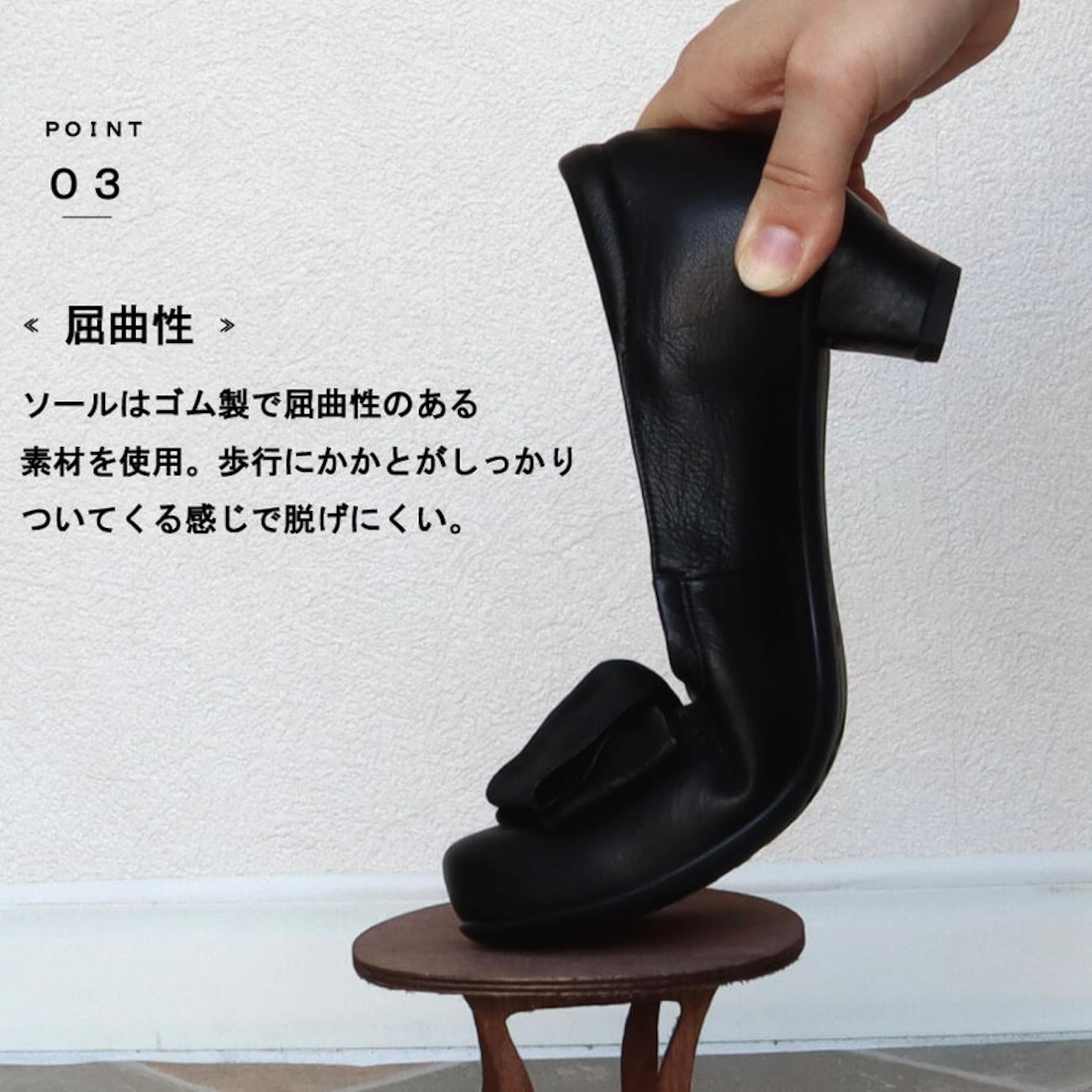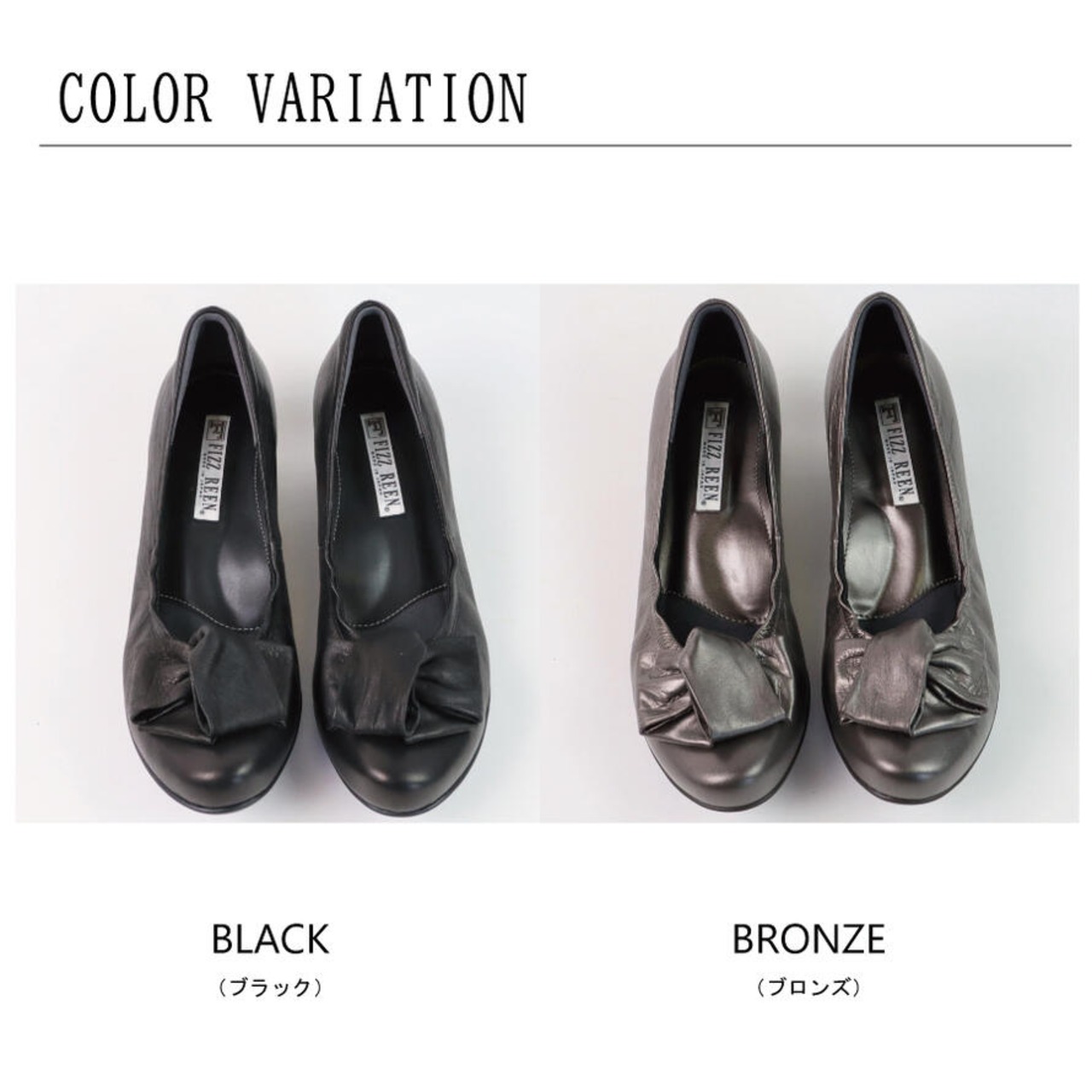 【FIZZ REEN】 リボン レザー パンプス 本革 ローヒール フォーマル 21.5 25.0 痛くない 厚底 おしゃれ 靴 黒 ヒール 4センチ