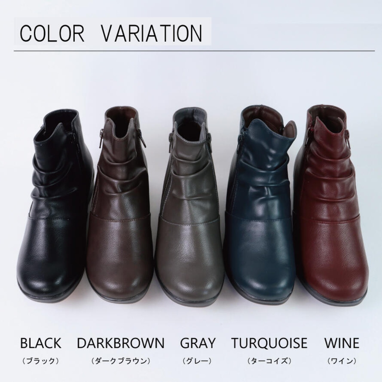 幅広 4E ブーツ レディース レイン 防水 滑らない 歩きやすい ヒール3cm ブラック ショートブーツ レインブーツ チャック 大きい