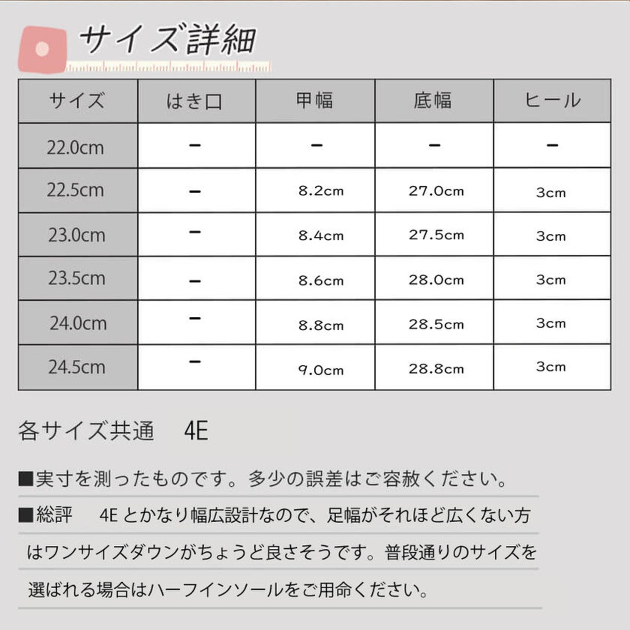 ・幅広さんにも安心の4E設計なのでつま先までゆったりと履けます