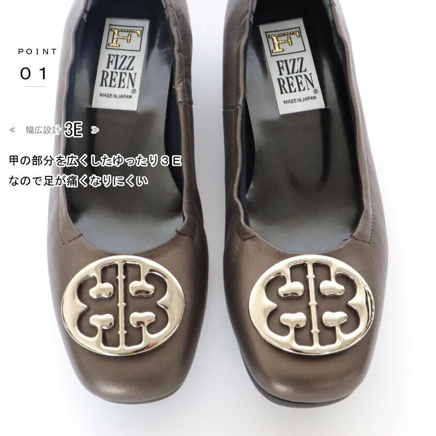 【FIZZ REEN】 バックル フラット パンプス ローヒール ぺたんこ 40代 3E 痛くない 本革 おしゃれ 靴 黒 ヒール 2センチ 50代 甲高 幅広 外反母趾 歩きやすい