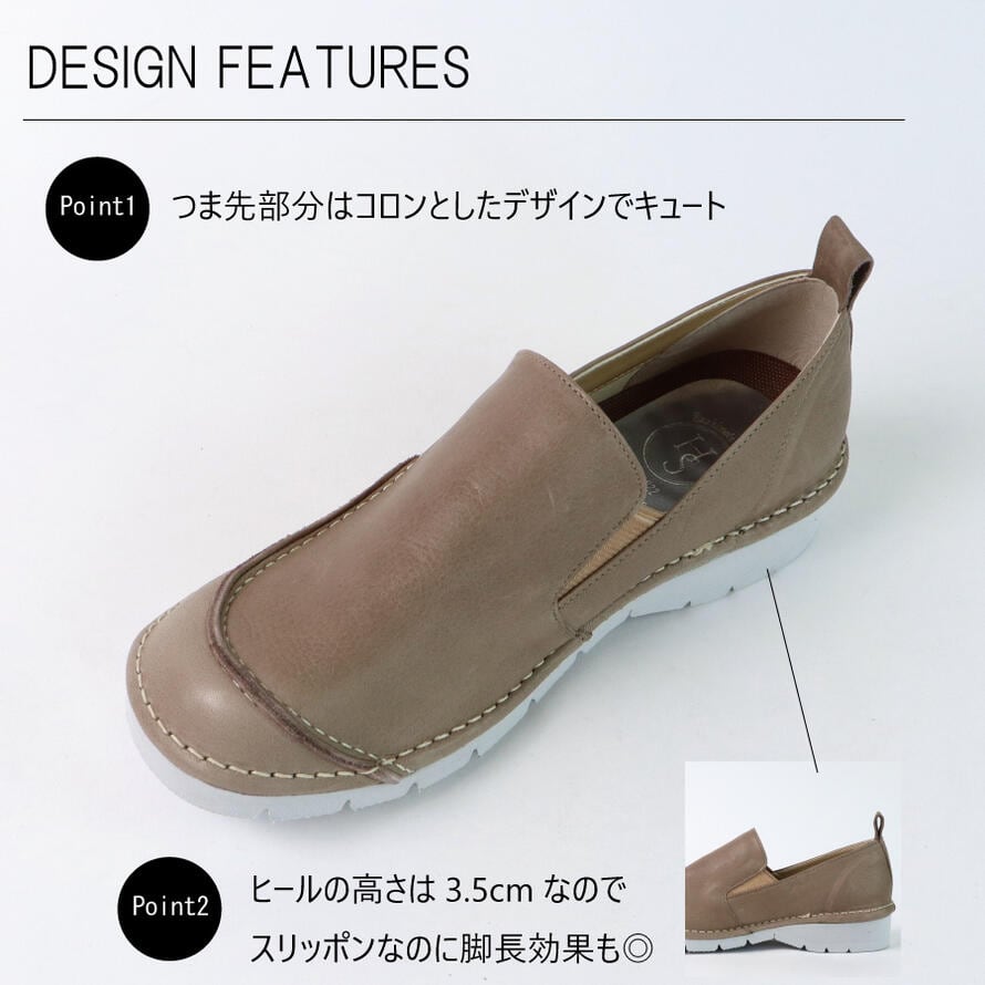 【日本製】 HS 4E レザー スリッポン レディース むれない ヒール3センチ 3cm 軽量 幅広 甲高 外反母趾 本革 靴 柔らかい おしゃれ ブラック ベージュ ホワイト