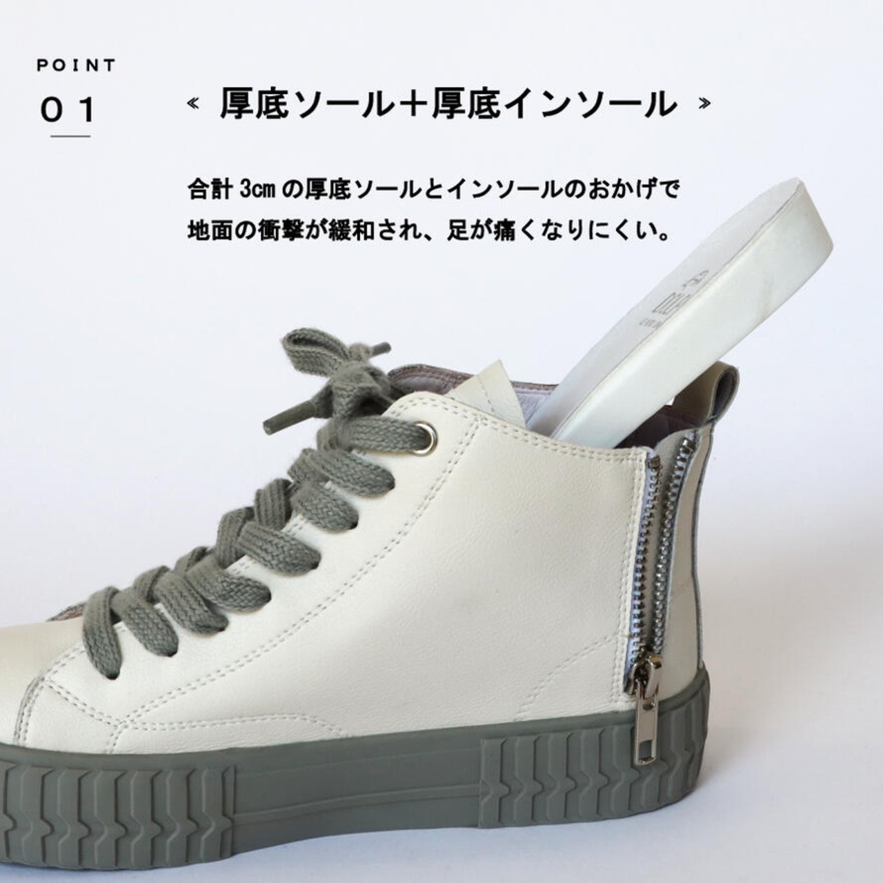 ハイカット レザー スニーカー レディース ヒール 3E 外反母趾 ブラック 厚底 おしゃれ 大人 キラキラ 黒 レースアップ ファスナー ホワイト