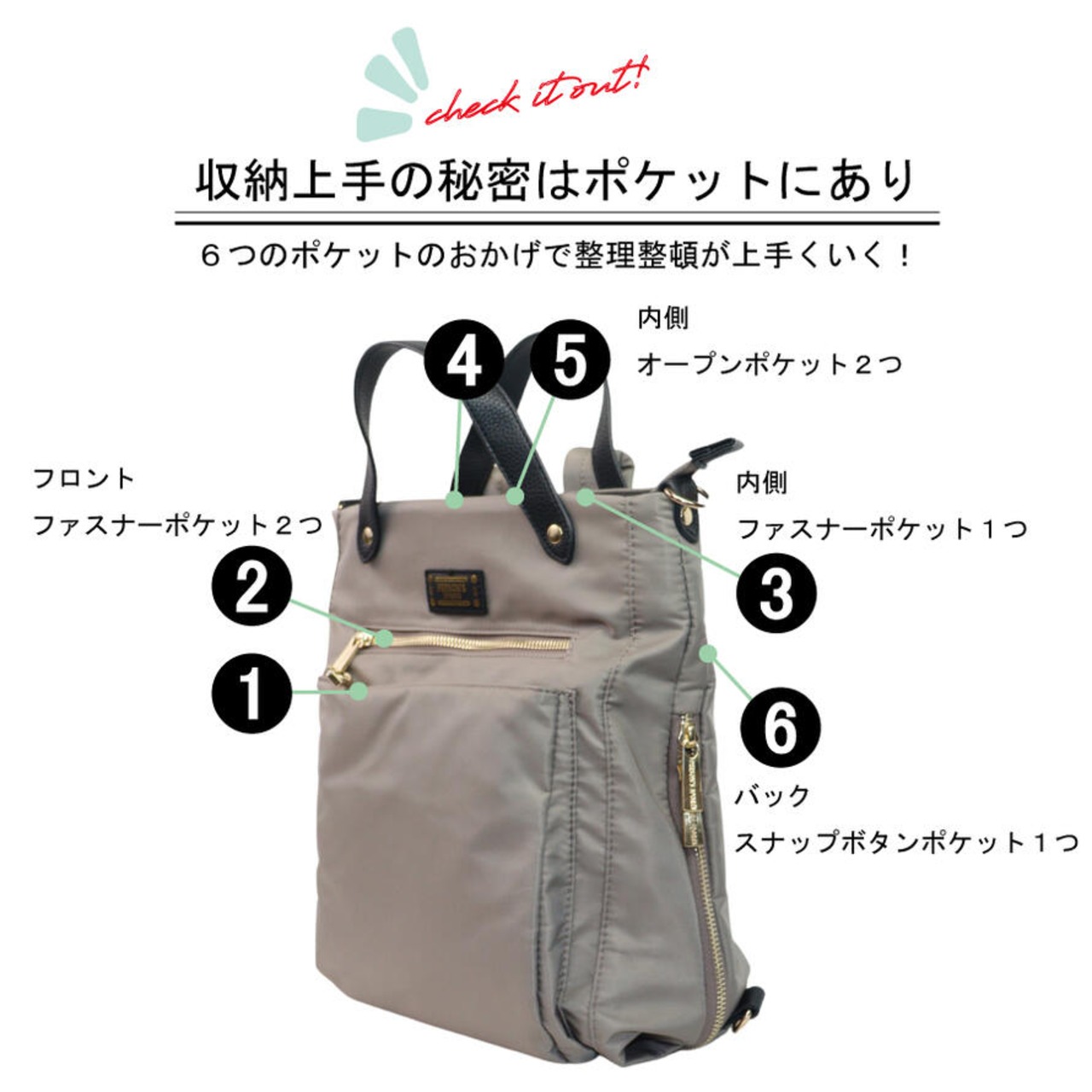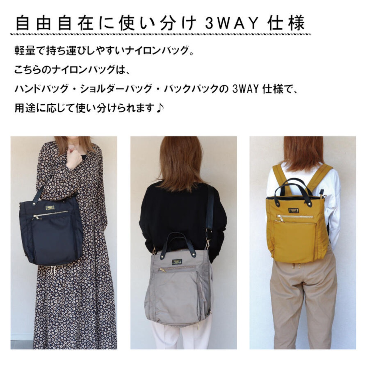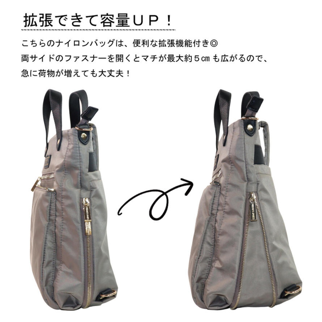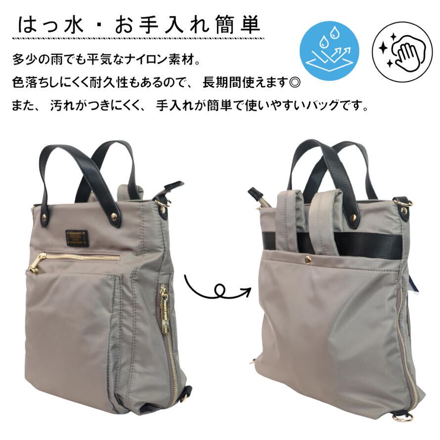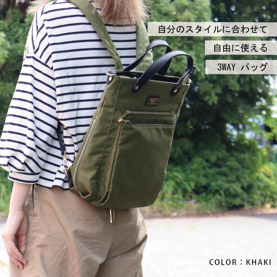 【PERRSON'S】 3way ナイロン バッグ レディース 通勤 軽量 大きめ 仕切り ファスナー付き 自立 旅行 撥水 かわいい ショルダー マチあり 縦長 リュック ハンドバッグ
