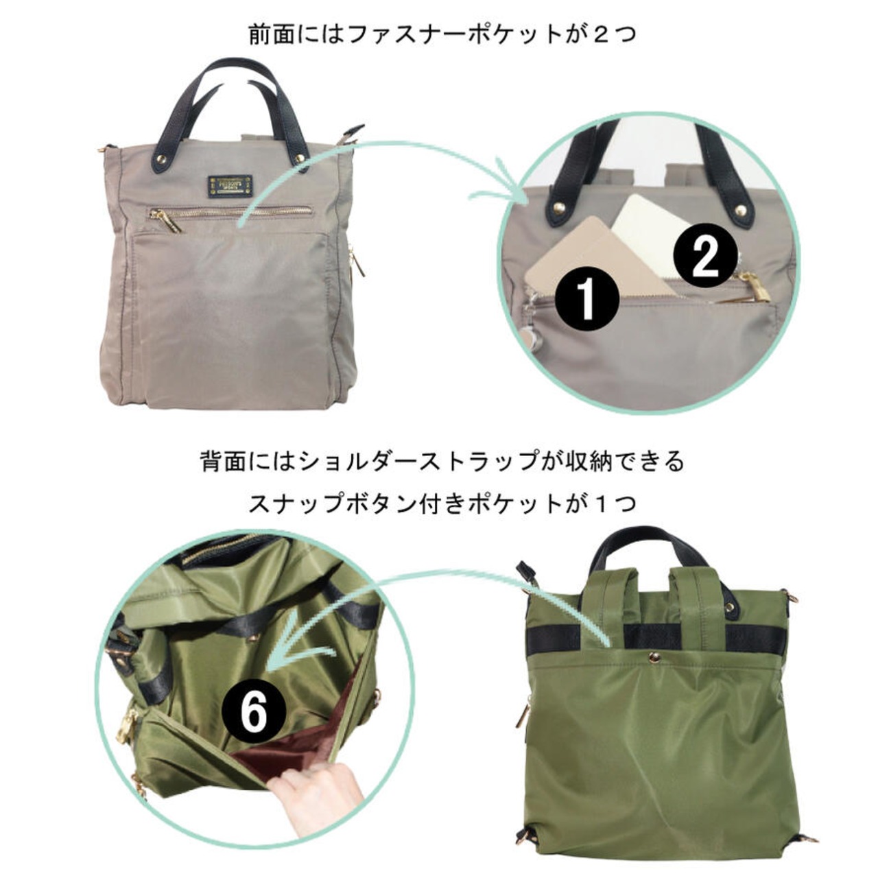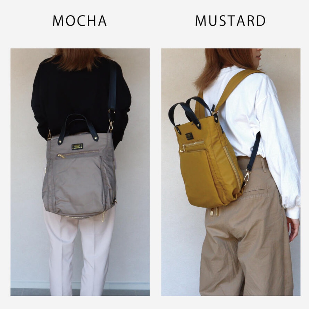 ・ハンドバック・ショルダーバック・バックパックの3way仕様で用途に応じて使い分けられます