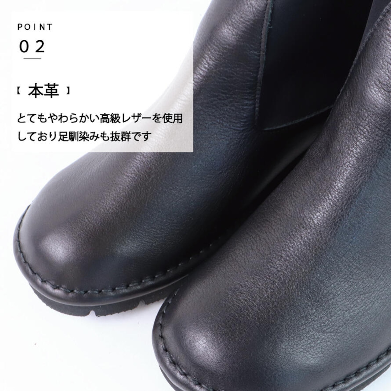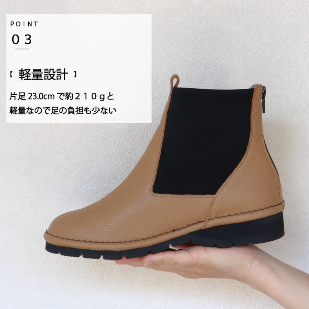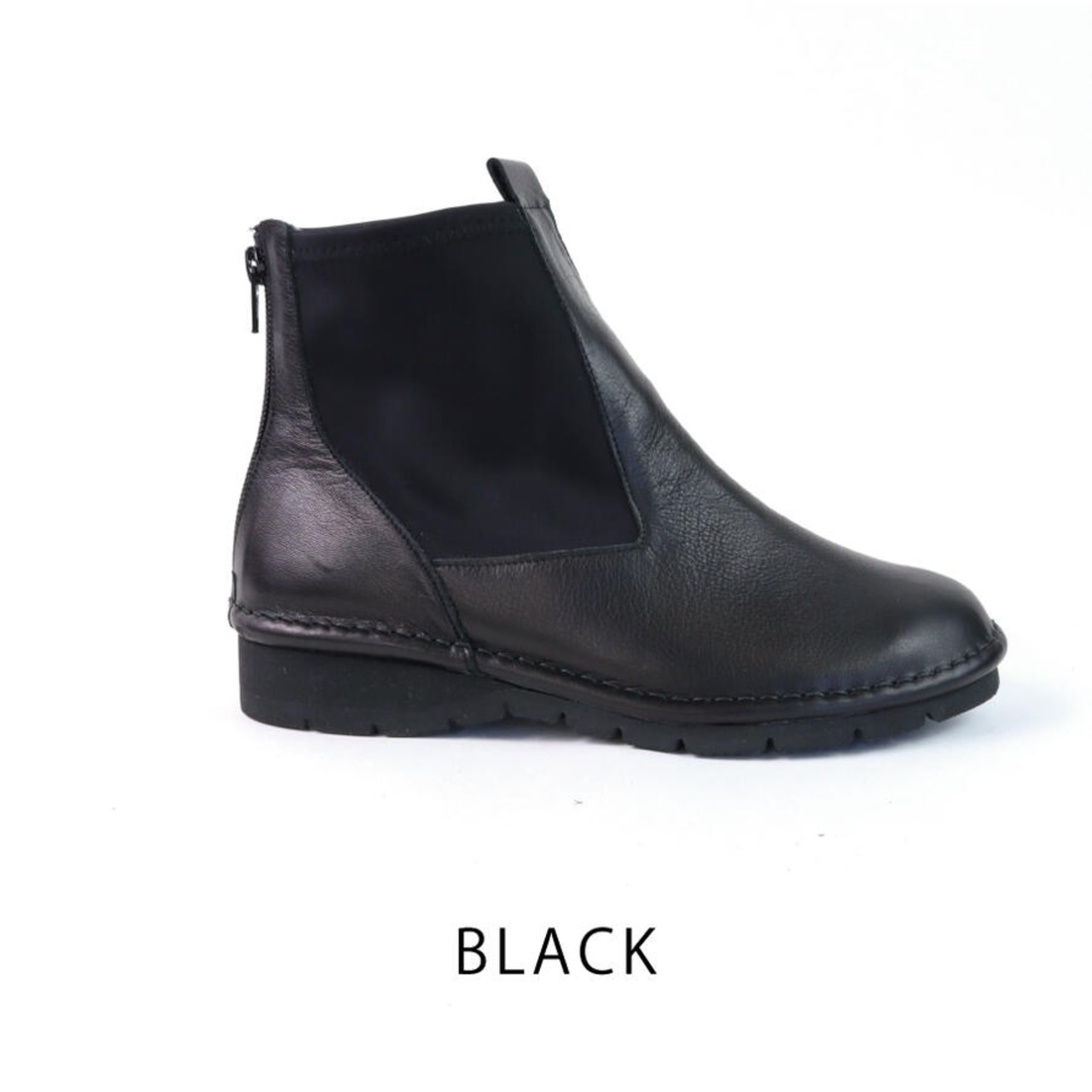 【日本製】 HS ファスナー 付き サイドゴア ブーツ レディース 本革 ブラック 3cm ヒール3センチ 4E 軽量 ショートブーツ 黒