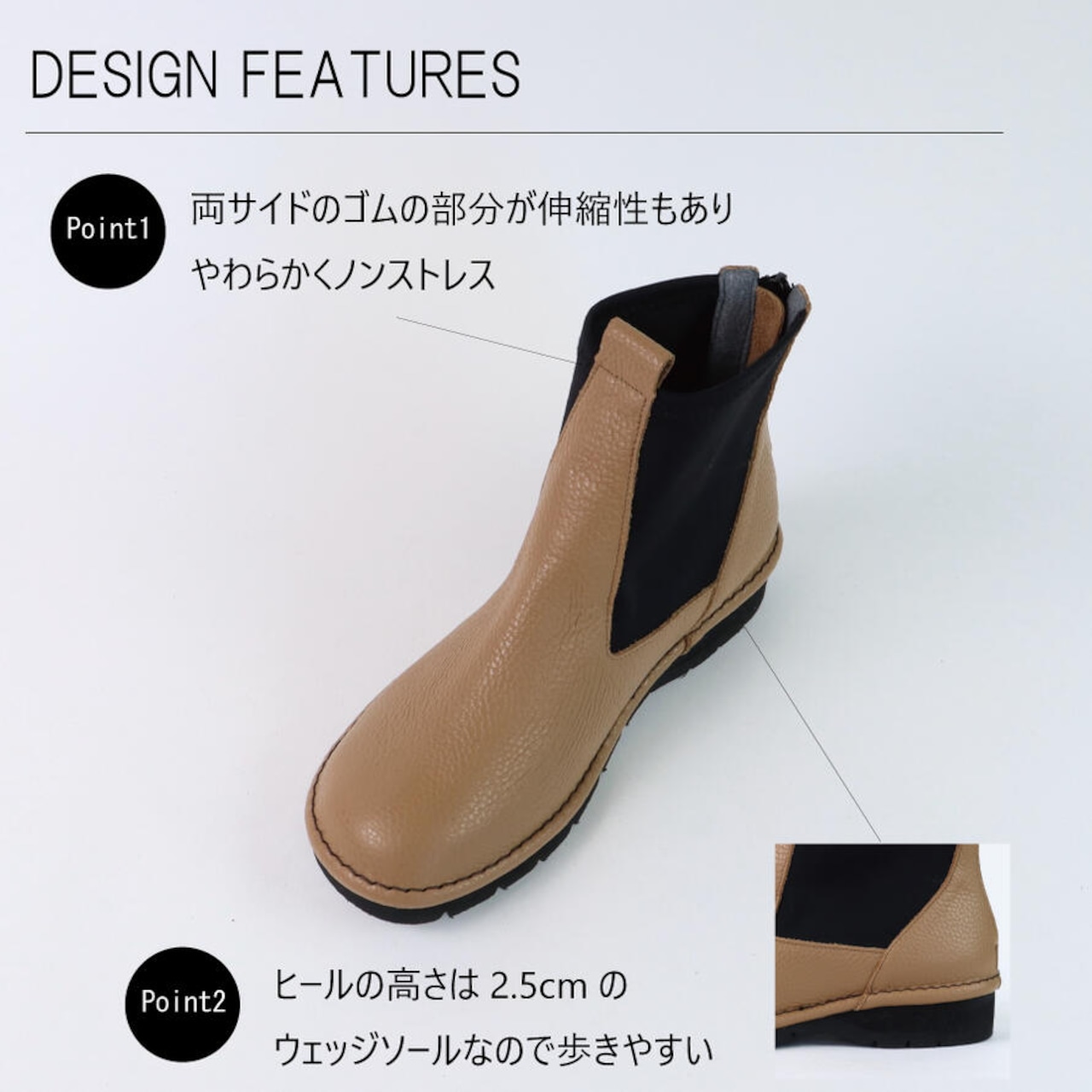 ・ファスナーとサイドゴアのおかげで優しくフィットし脱着も楽ちん!