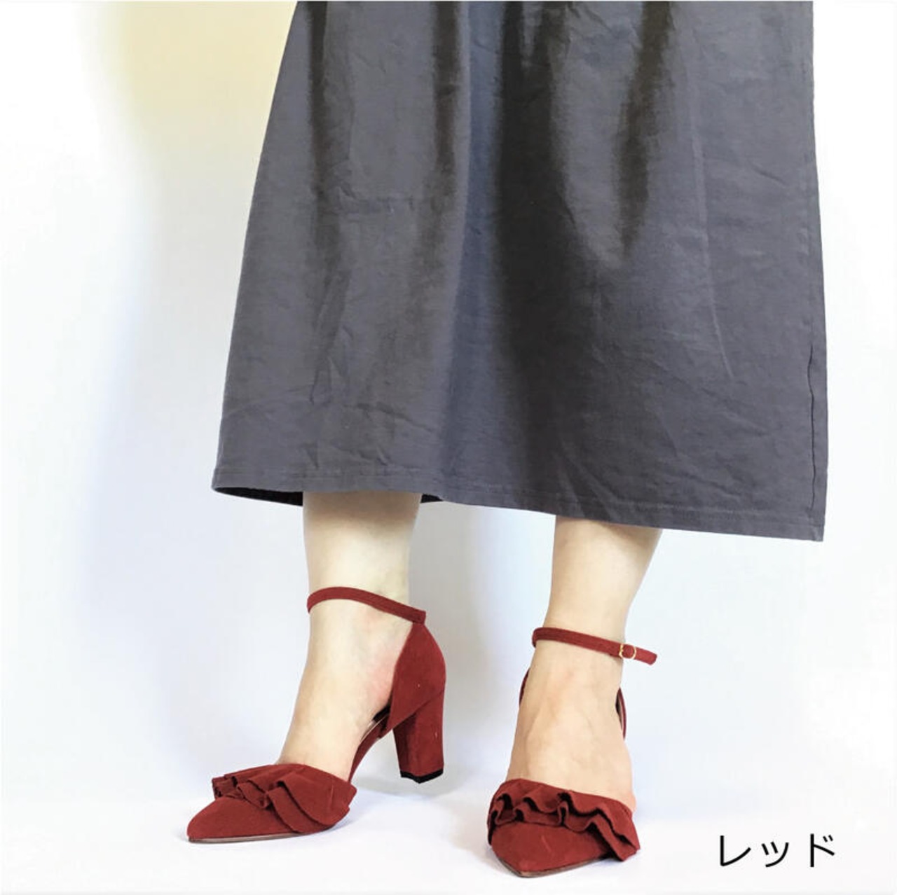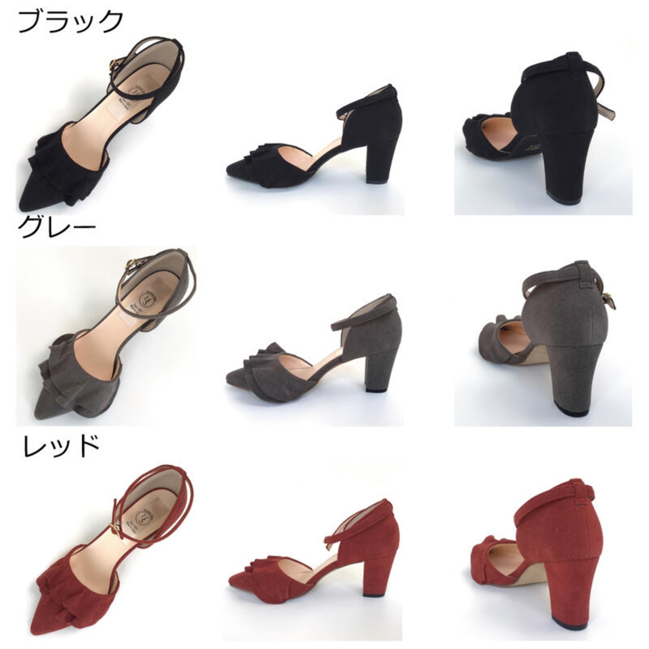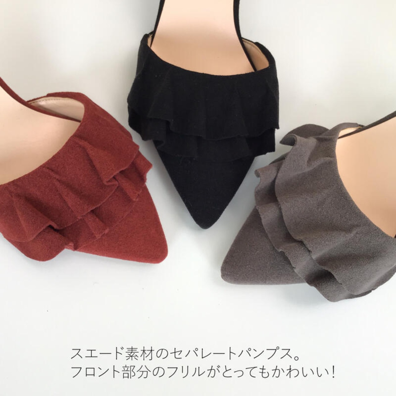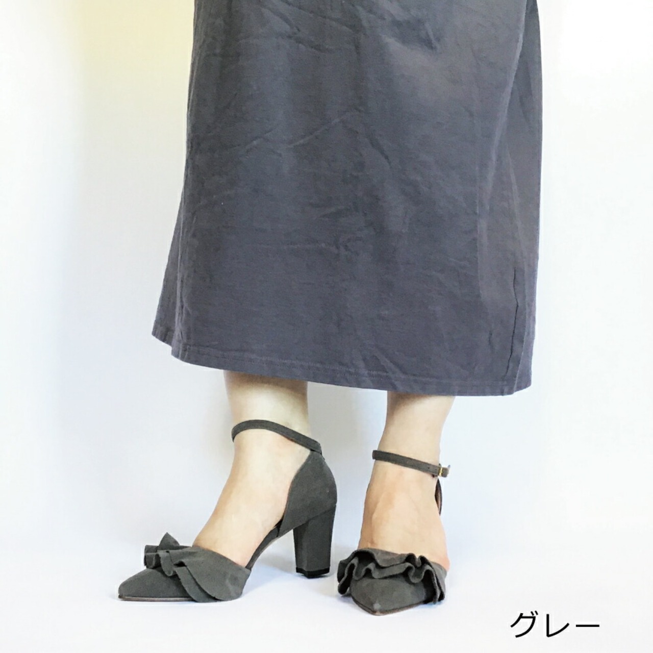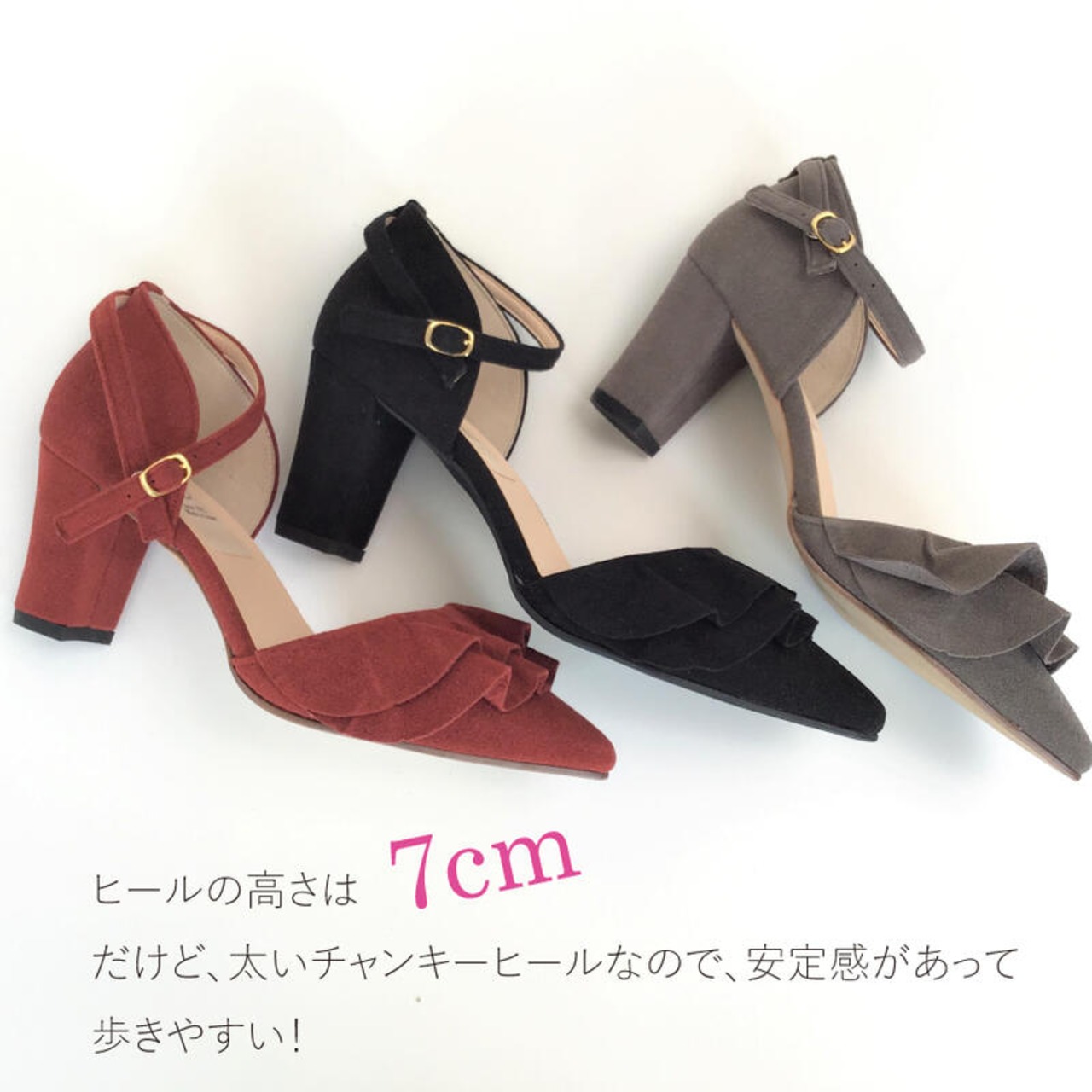 【日本製】 HS フリル スエード パンプス 320 7cm ヒール7センチ ブラック 半額
