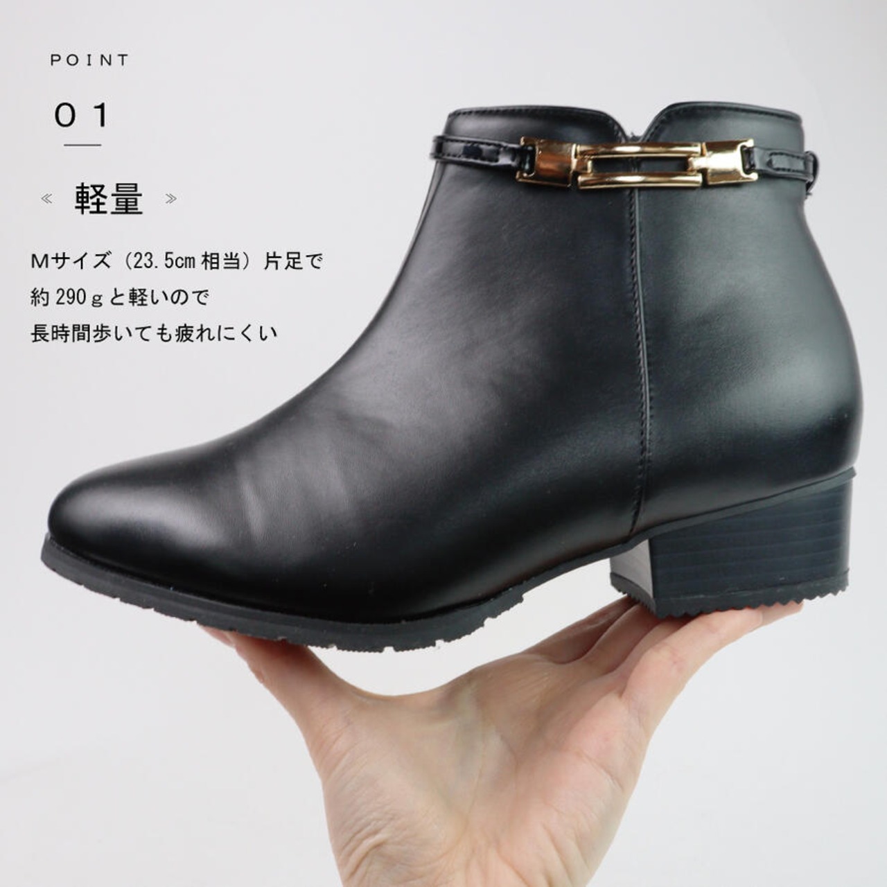 見た目の割に軽量で長時間履いても疲れにくい