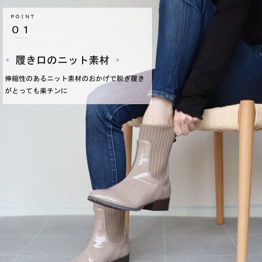 サイドニット レイン ブーツ レディース 3cm ヒール3センチ レインブーツ おしゃれ 軽い 防水 ショート 3E 相当 チャック 雨
