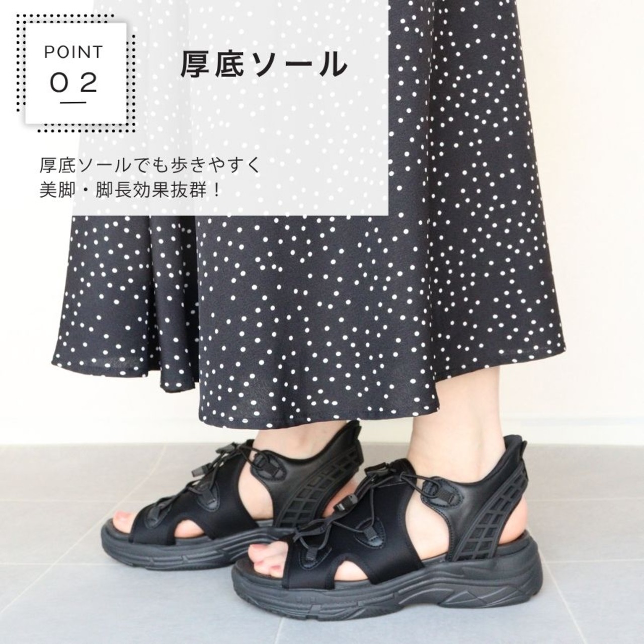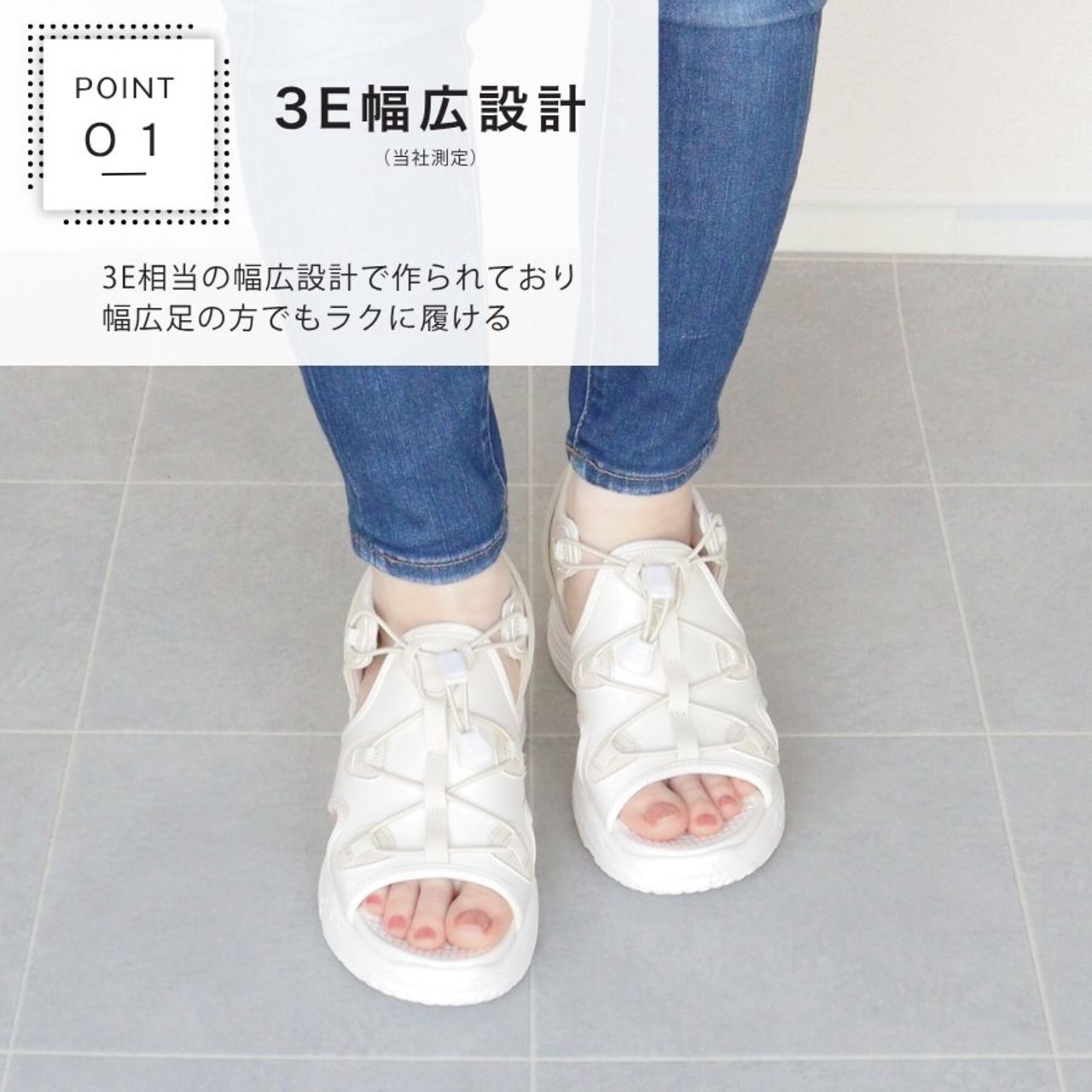 【スルッと履ける】レディースサンダル 幅広 3E 軽量 履きやすい 疲れにくい 旅行用 おしゃれ 歩きやすい サンダル ドローストリング スポーツサンダル 厚底サンダル 黒 白 春 夏 滑りにくい ゆったり クッション スポサン
