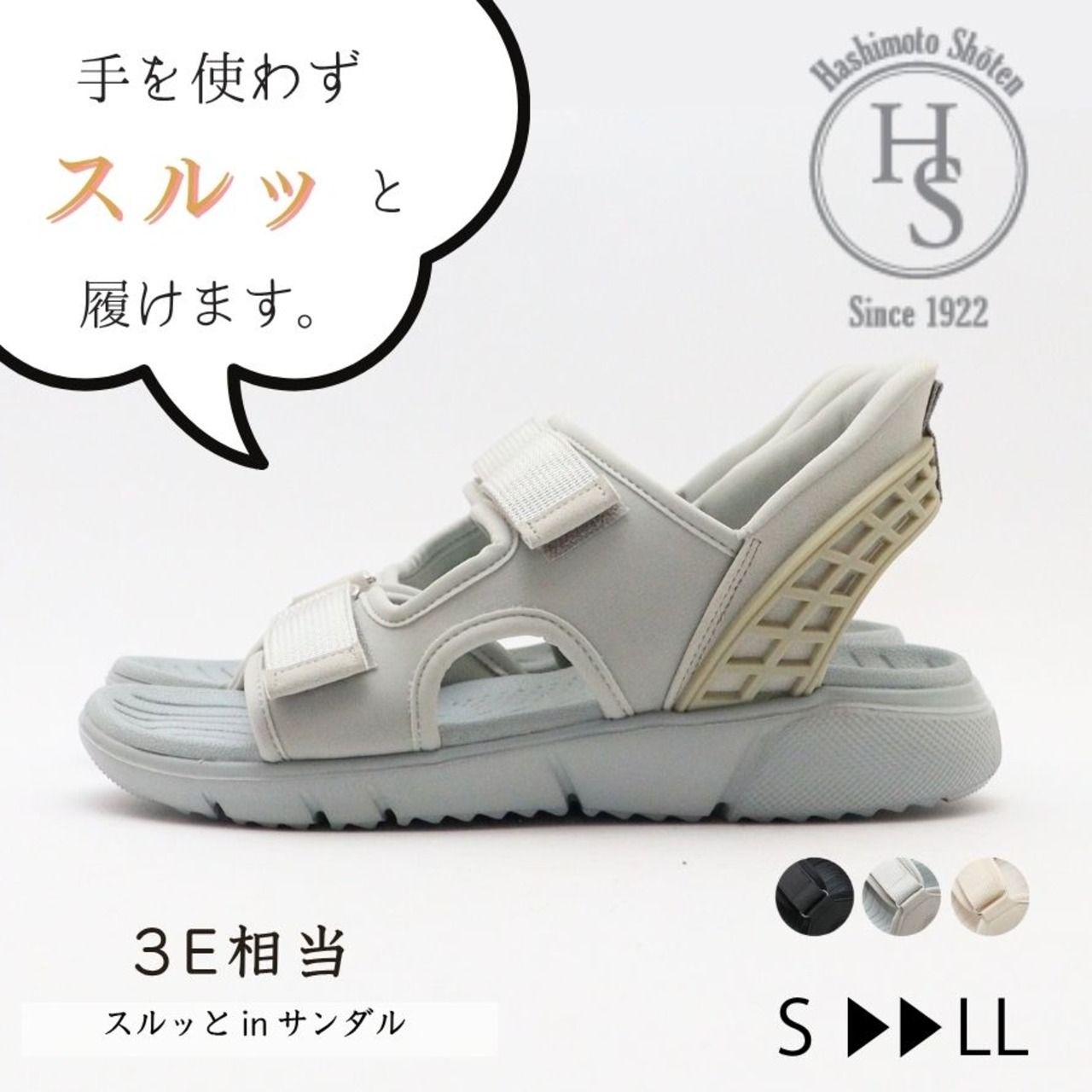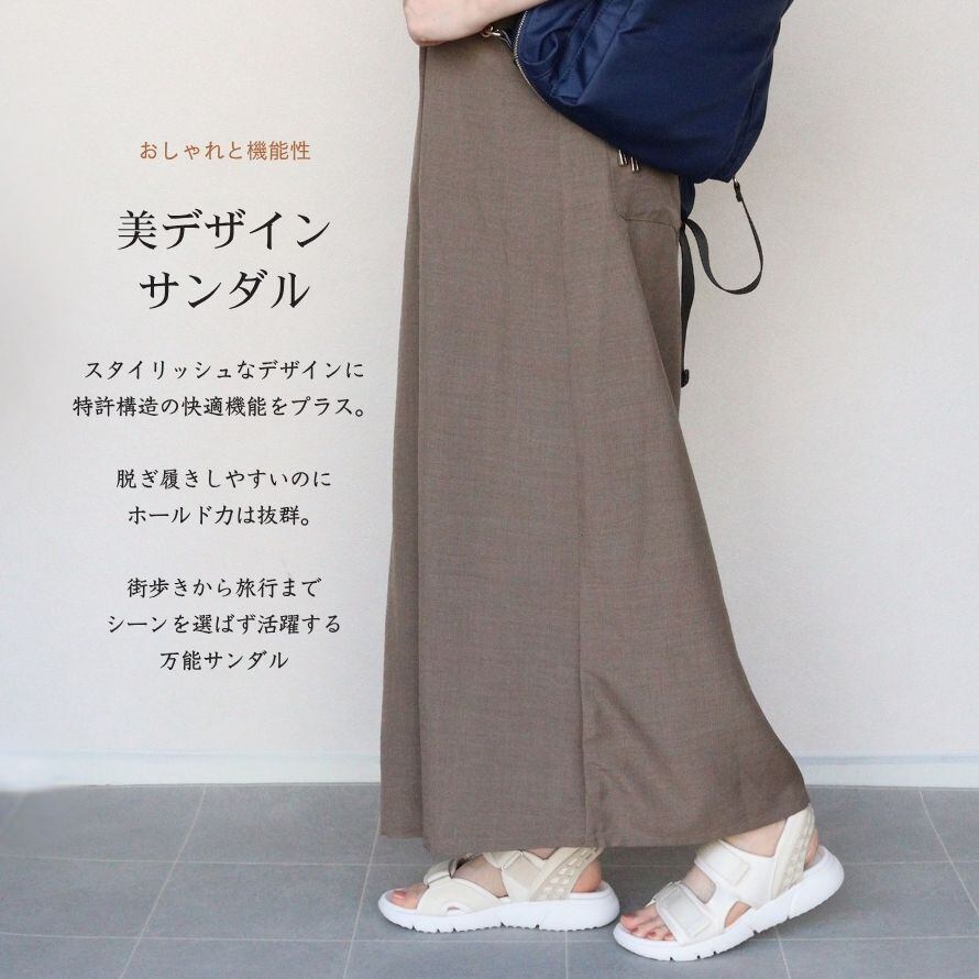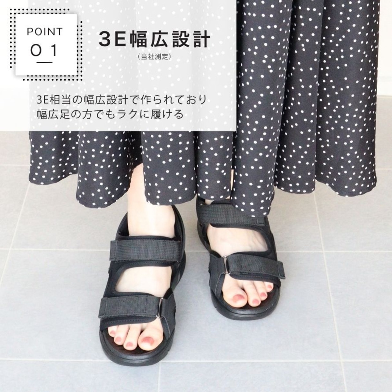 【スルッと履ける】レディースサンダル 幅広 3E 軽量 履きやすい 疲れにくい 旅行用 おしゃれ 歩きやすい サンダル 面ファスナー スポーツサンダル 厚底サンダル 黒 白 グレー 春 夏 滑りにくい ゆったり クッション スポサン