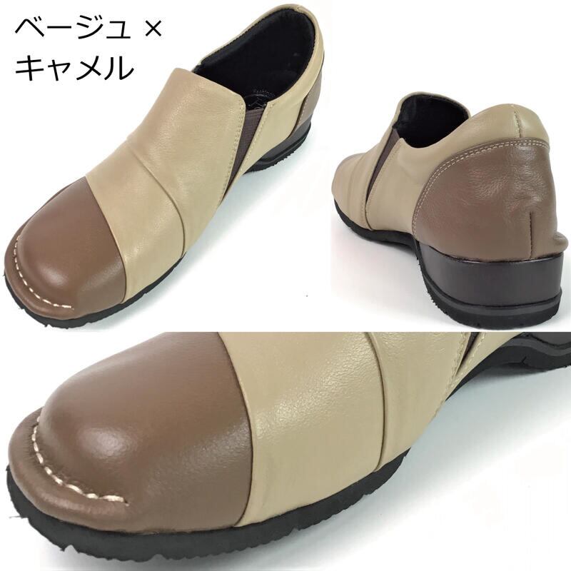 HS バイカラー レザー コンフォートシューズ レディース おしゃれ ヒール3センチ ヒール ブラック 本革 スリッポン 3E 靴