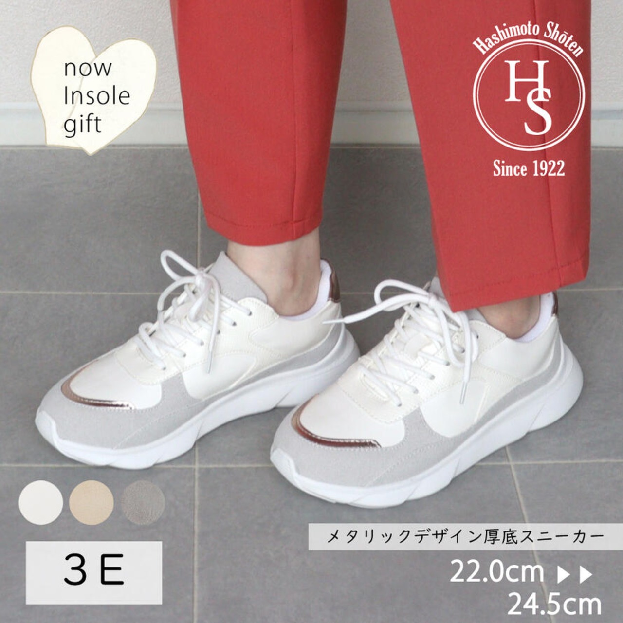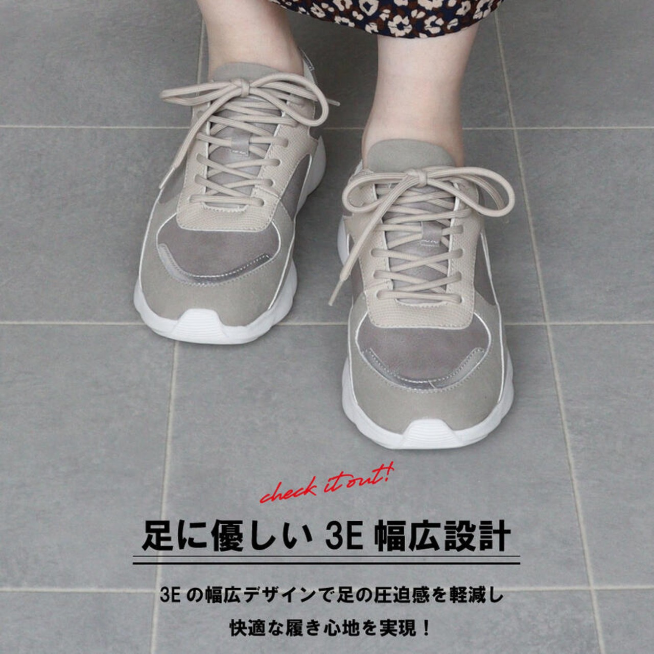 厚底 メタリック スニーカー レディース きれいめ 3E おしゃれ クッション 幅広 白 靴 ブラック ヒール 軽量
