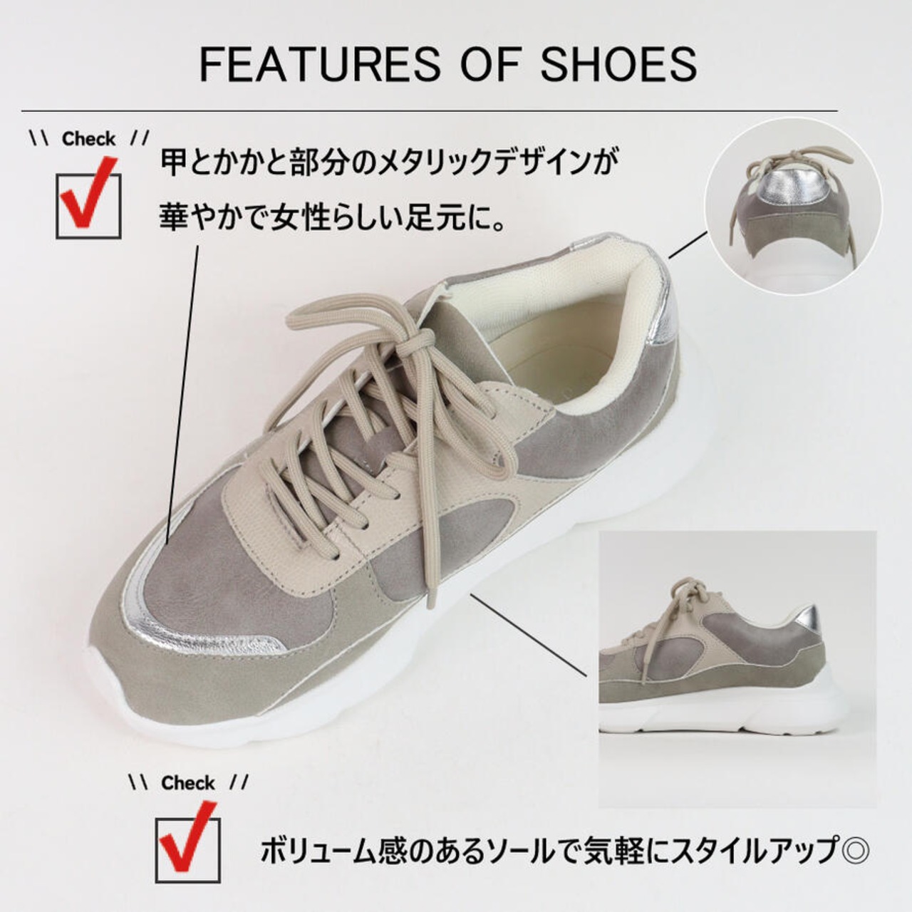 ・甲とかかと部分がメタリックで女性らしいデザインに