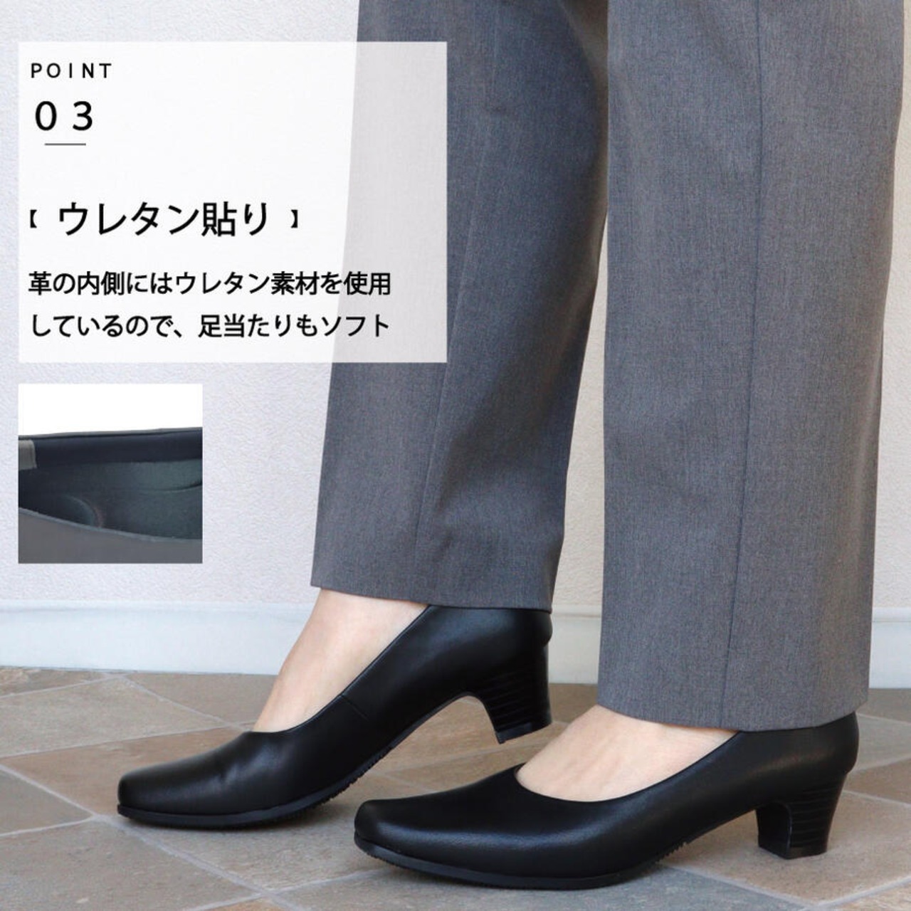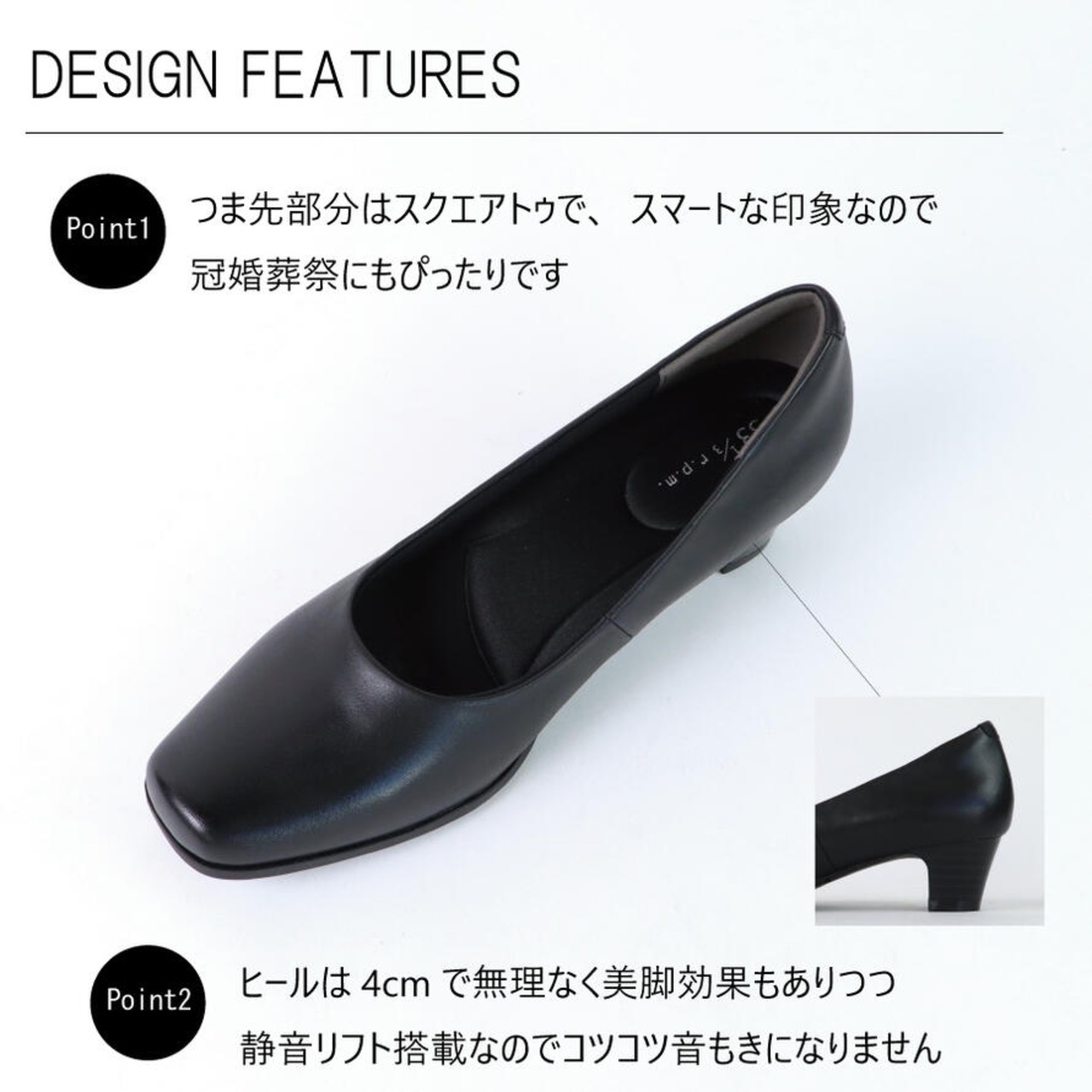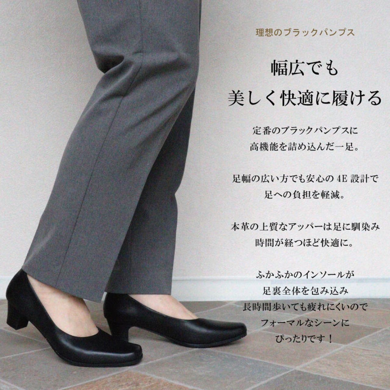 ふかふか クッション フォーマル パンプス 痛くない 黒 歩きやすい 本革 幅広 4E 外反母趾 ヒール 通勤