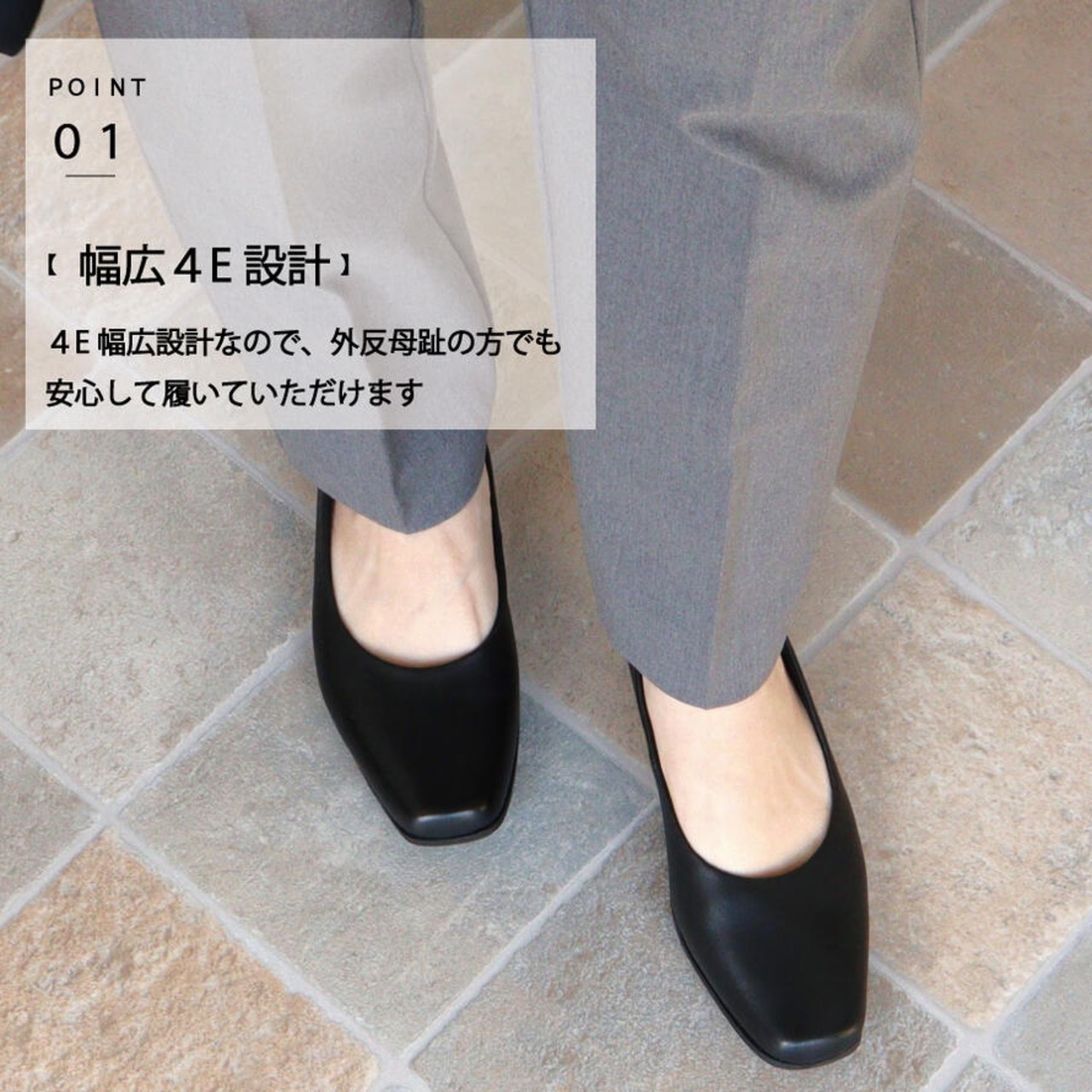 ・4E幅広設計なので外反母趾の方でも安心して履いていただけます