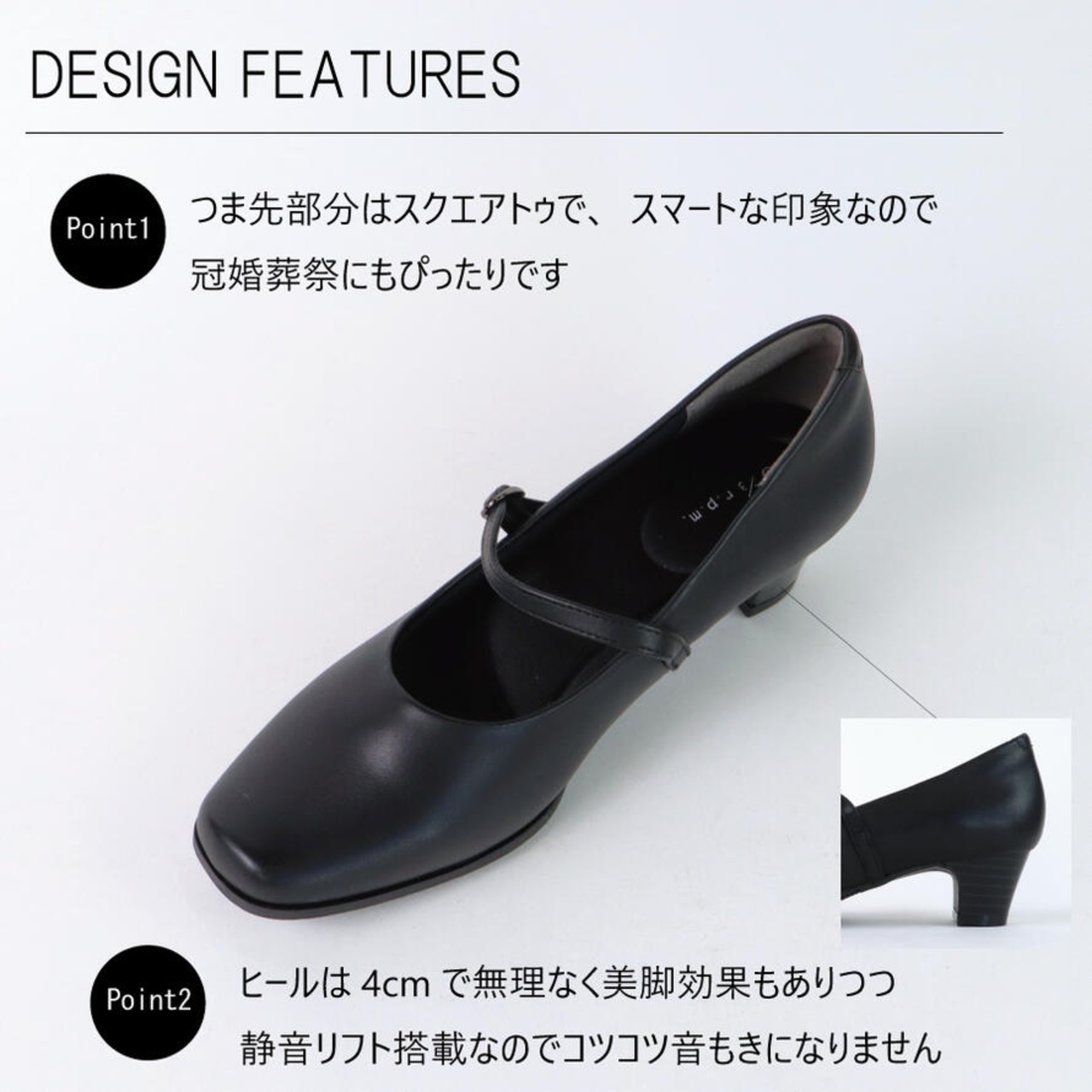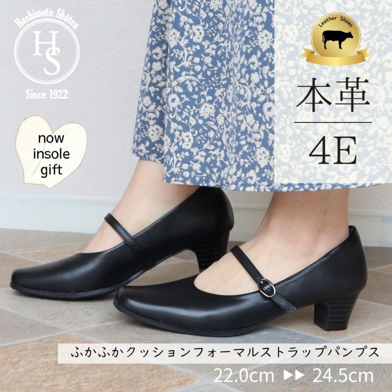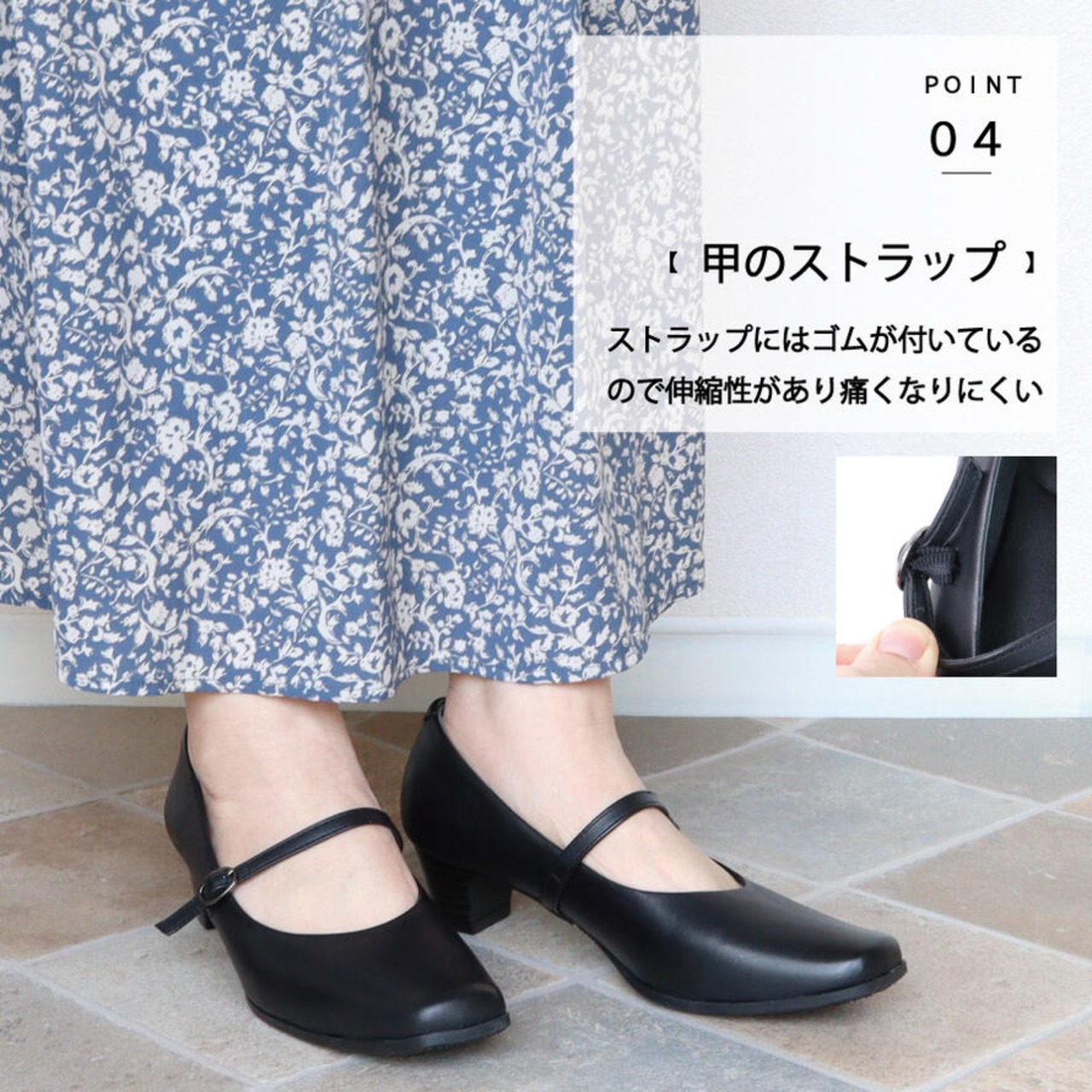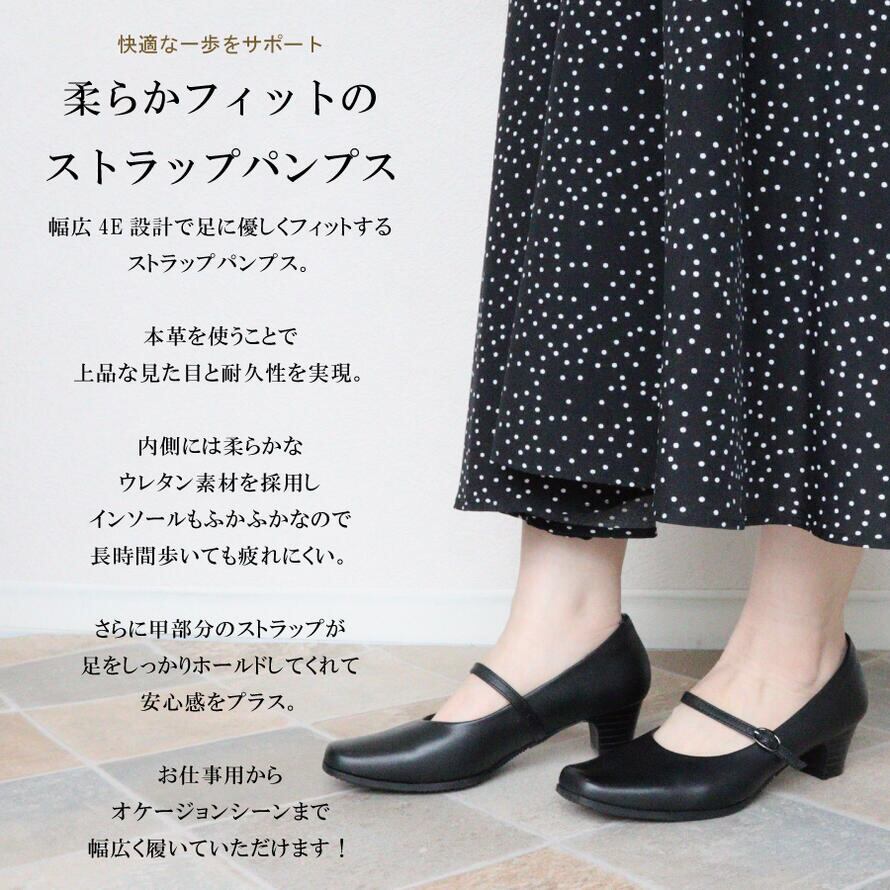 ふかふか クッション フォーマル パンプス 痛くない 黒 歩きやすい 本革 幅広 4E 外反母趾 ローヒール ヒール ストラップ ベルト 通勤
