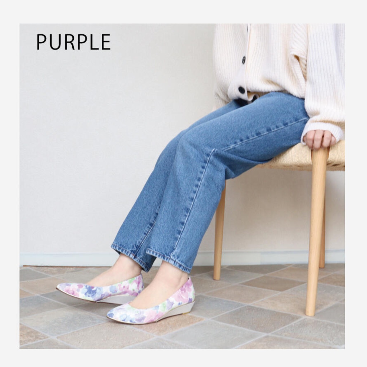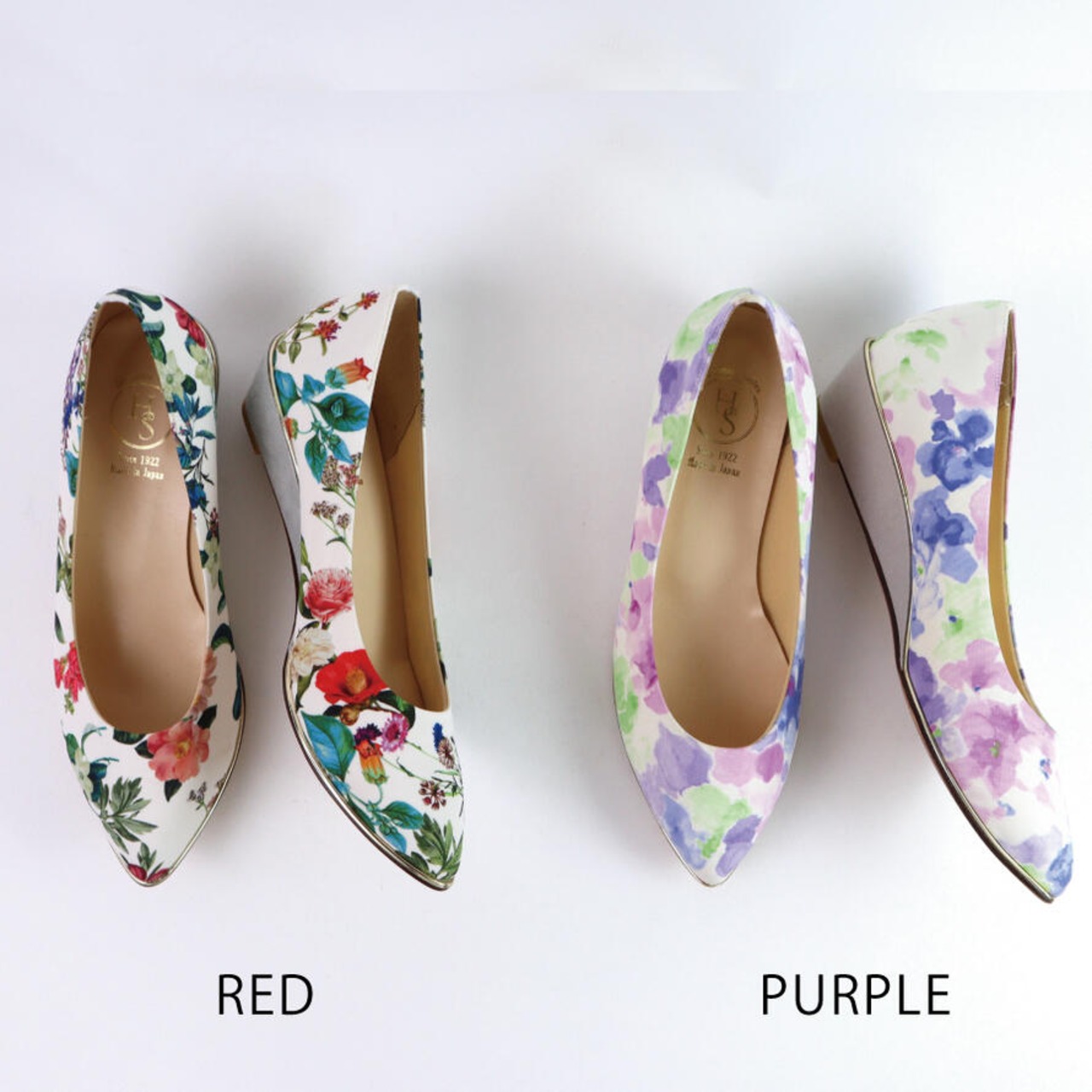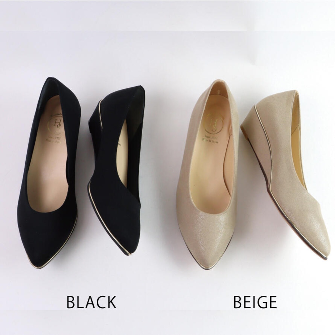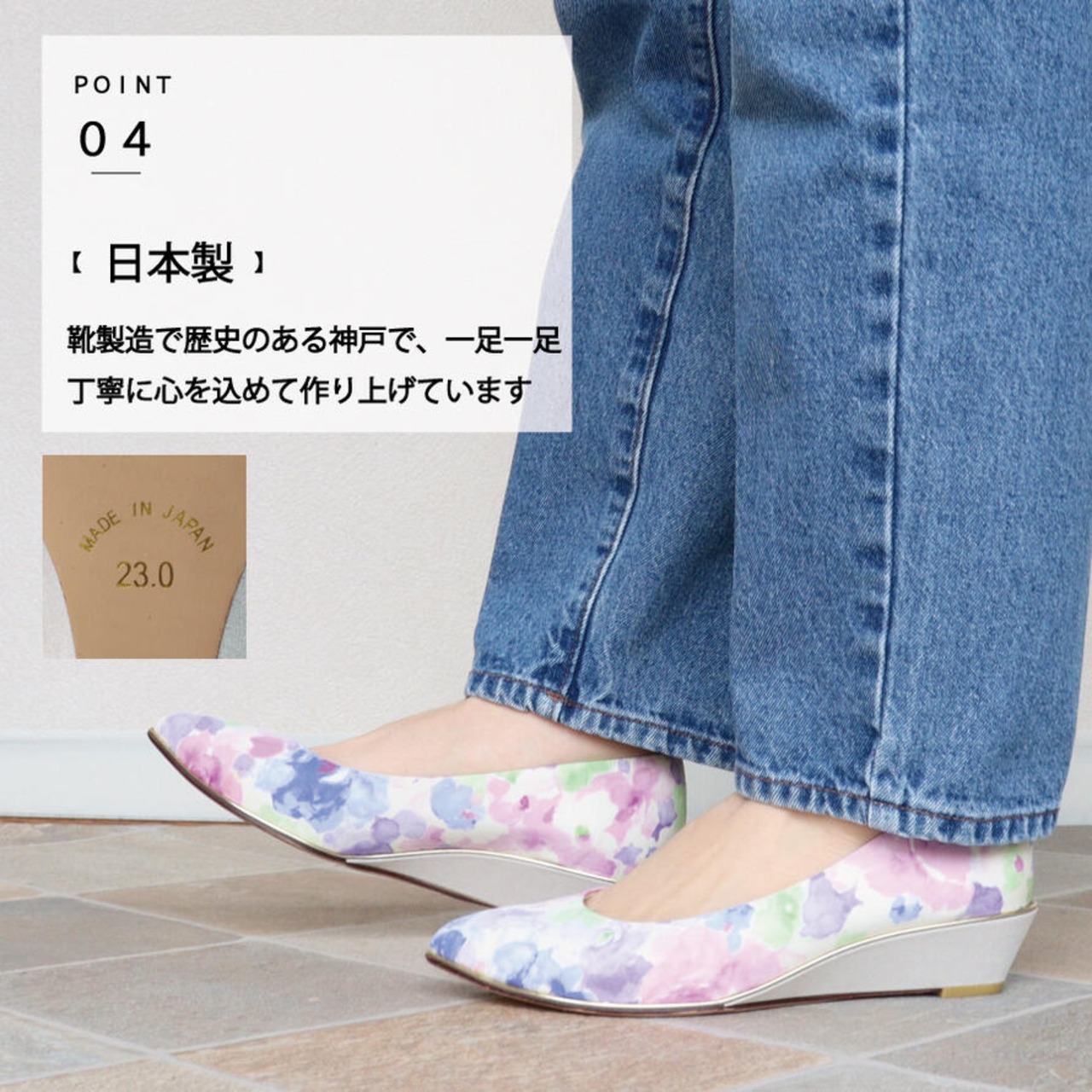 【日本製】 HS ウェッジソール サテン パンプス 3E 相当 外反母趾 3cm ヒール3センチ ブラック ベージュ 花柄 ボタニカル
