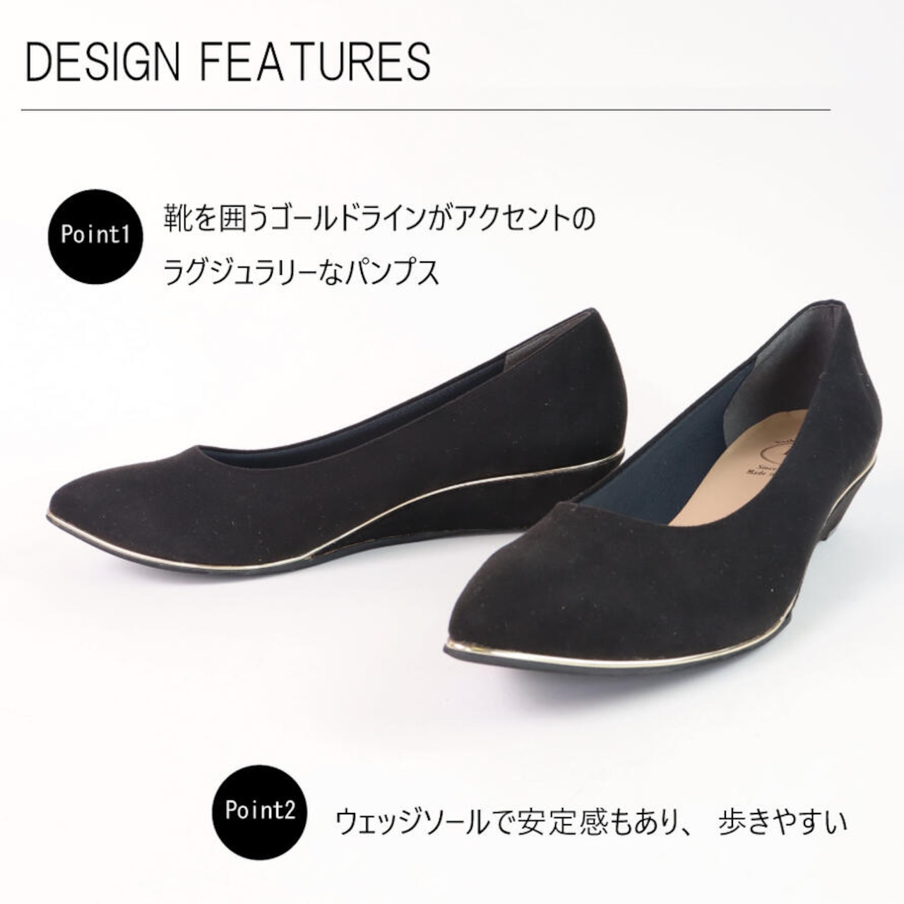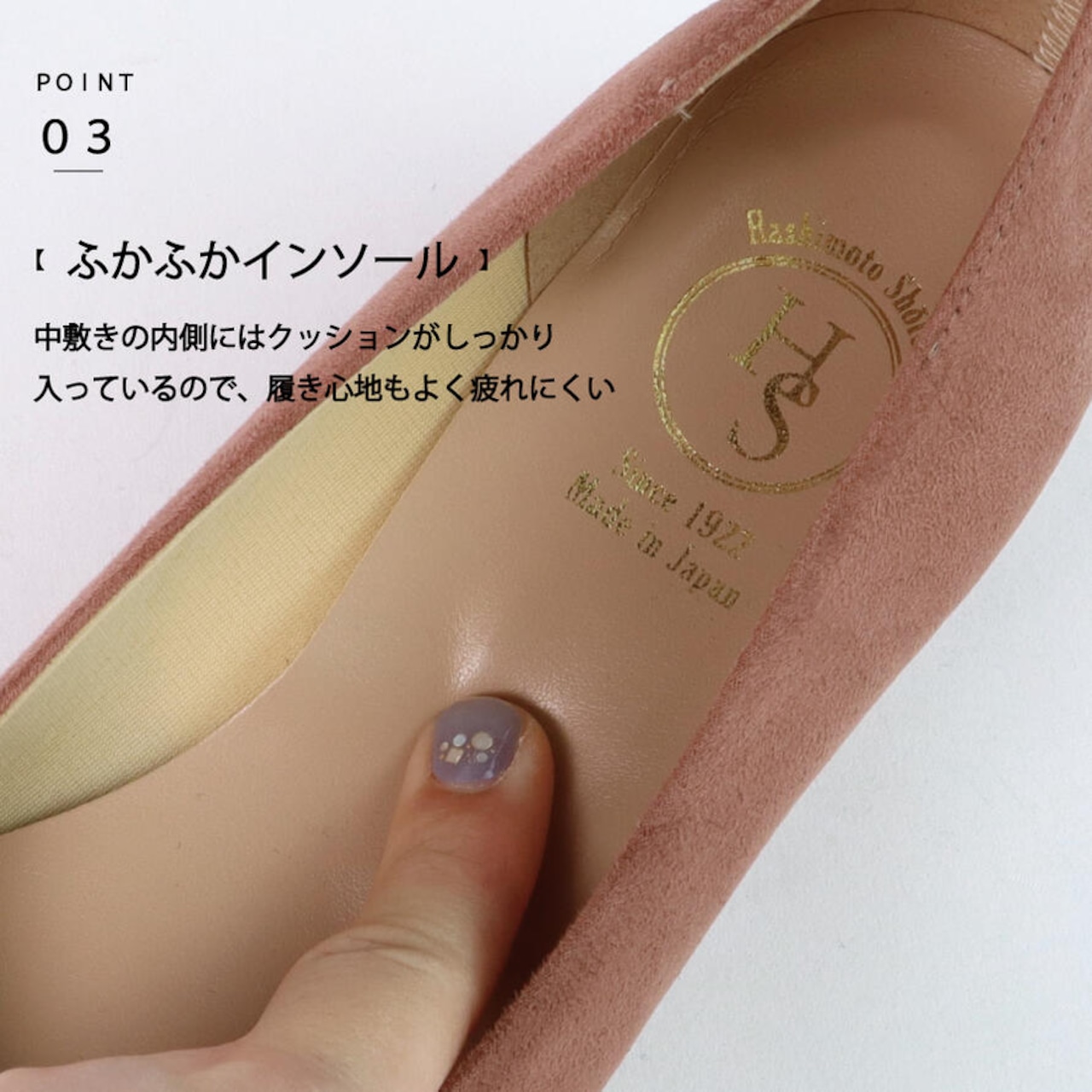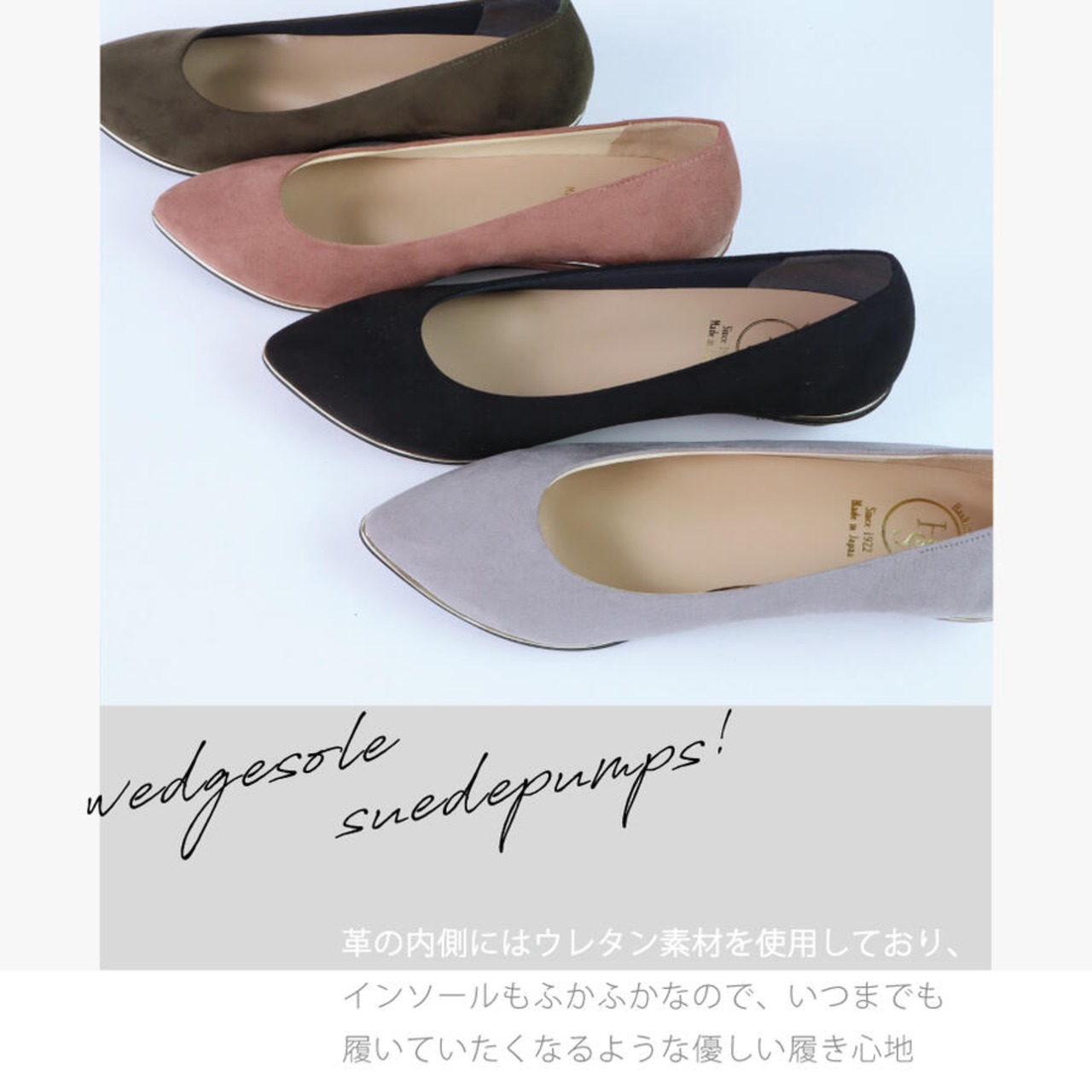 【日本製】 HS ウェッジソール パンプス スエード 3E 相当 ヒール3センチ ブラック ベージュ ローヒール ぺたんこ