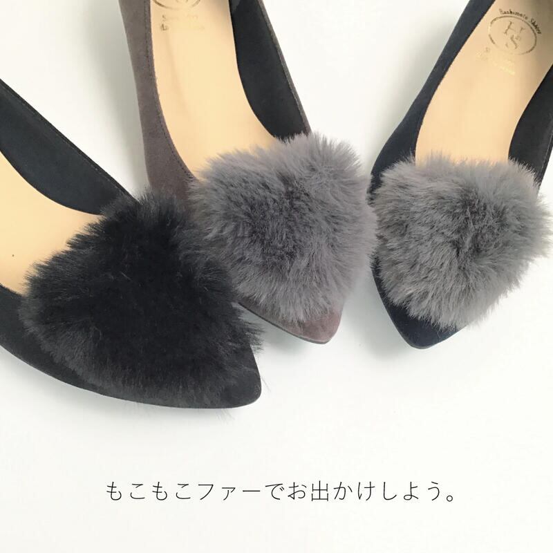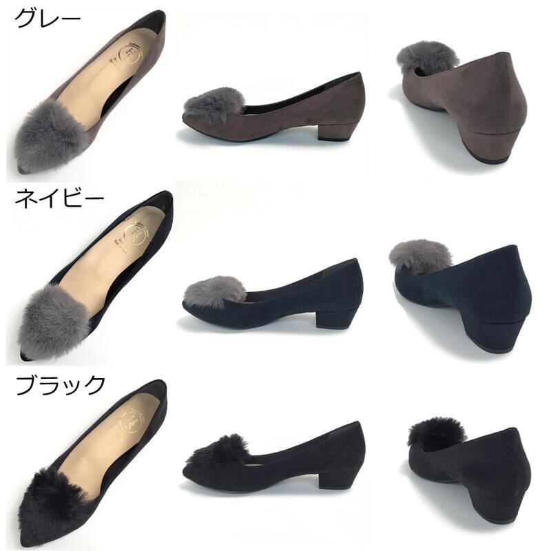【日本製】 HS ファー スエード ローヒール パンプス 3cm ヒール3センチ 3E 相当 外反母趾