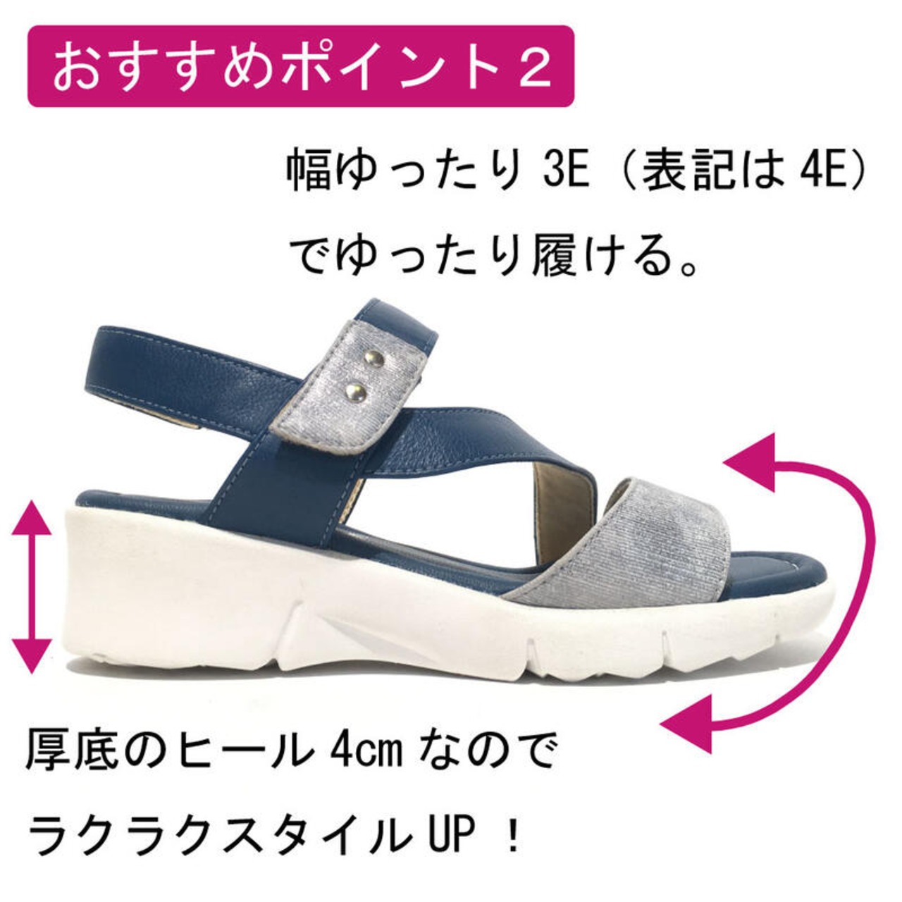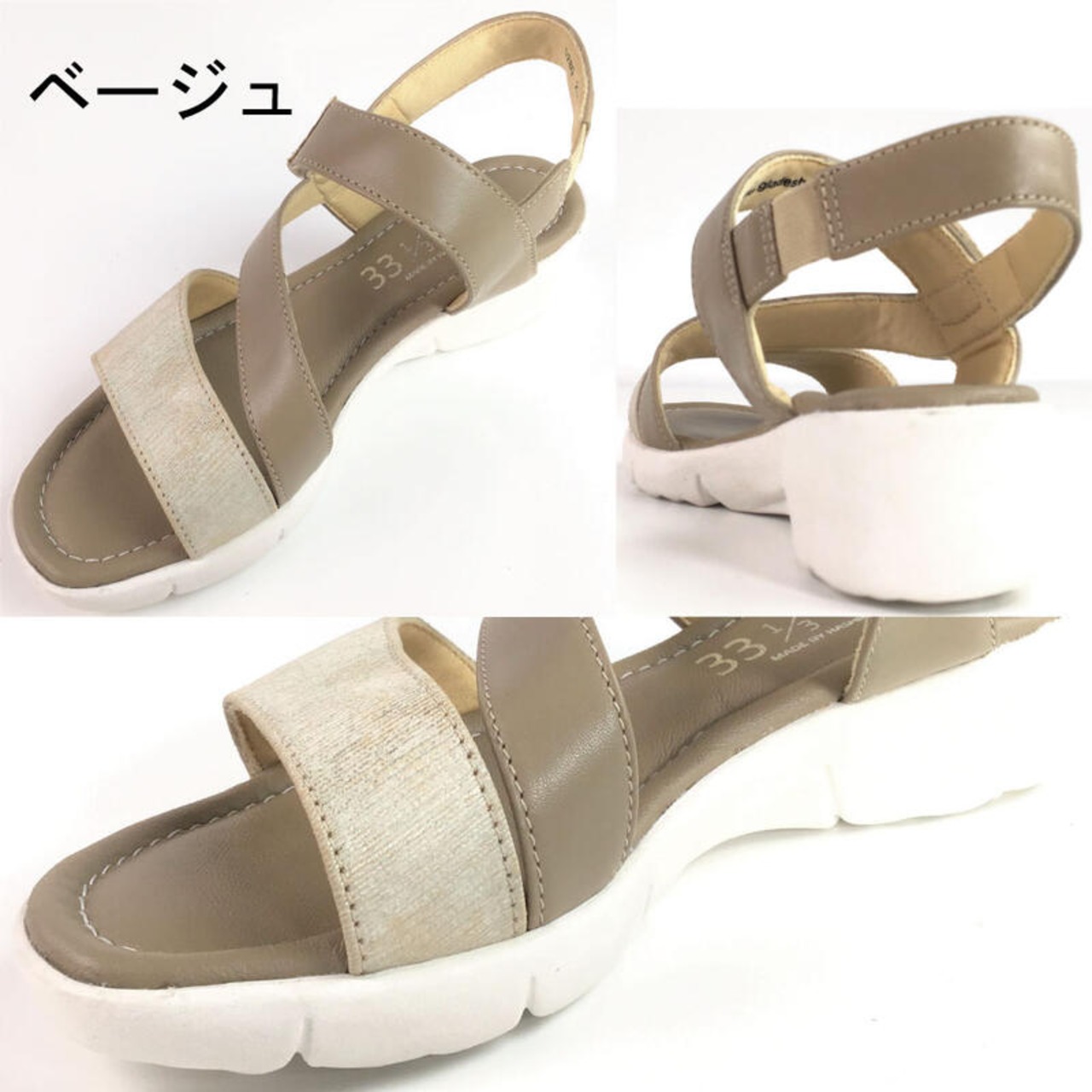 レザー スポーツ サンダル レディース 4cm ヒール4センチ 4E 外反母趾 ベージュ