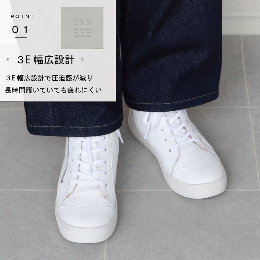 ハイカット レザー スニーカー レディース きれいめ おしゃれ 軽量 靴 黒 白 ブラック スエード 靴 痛くない 疲れない 3E 外反母趾 大人