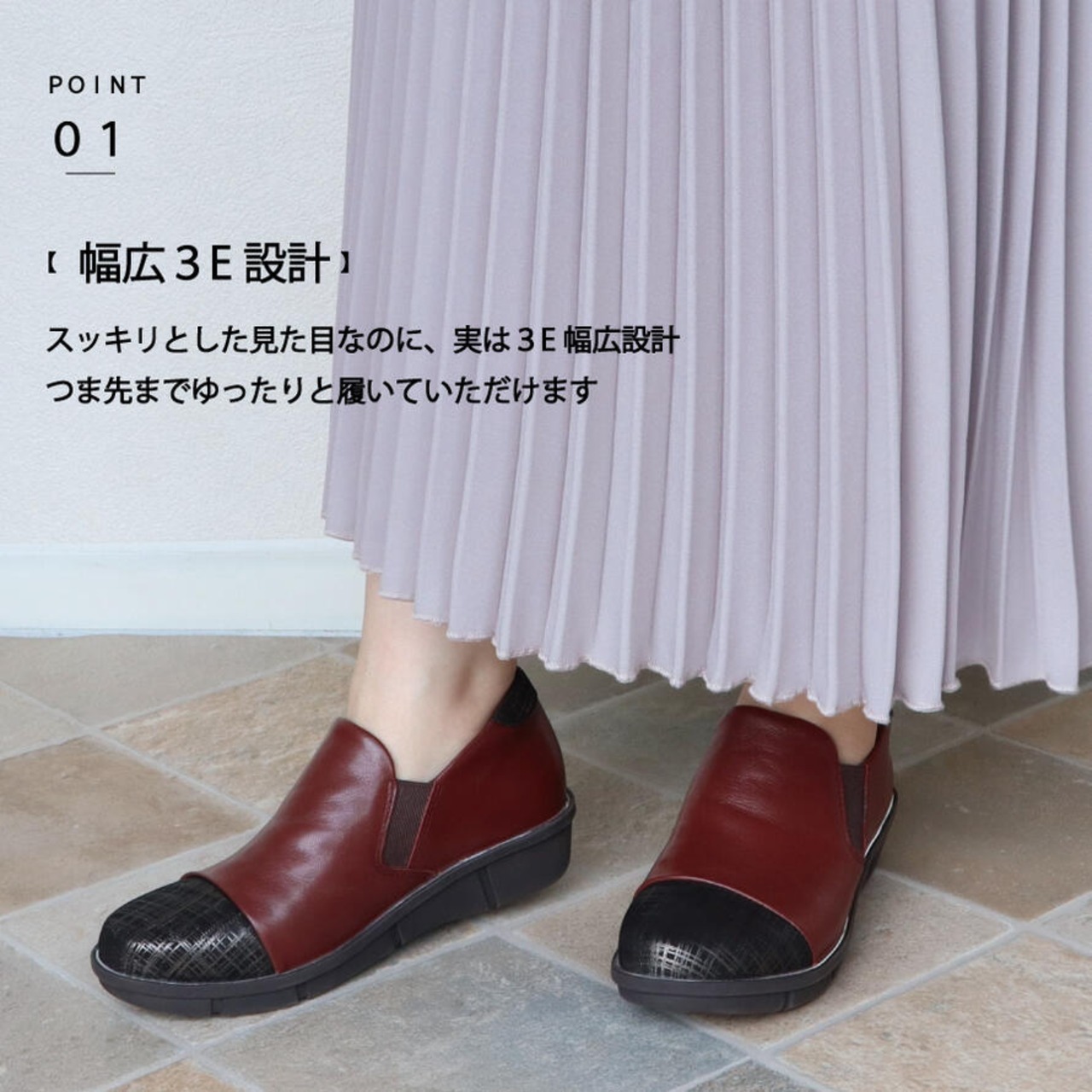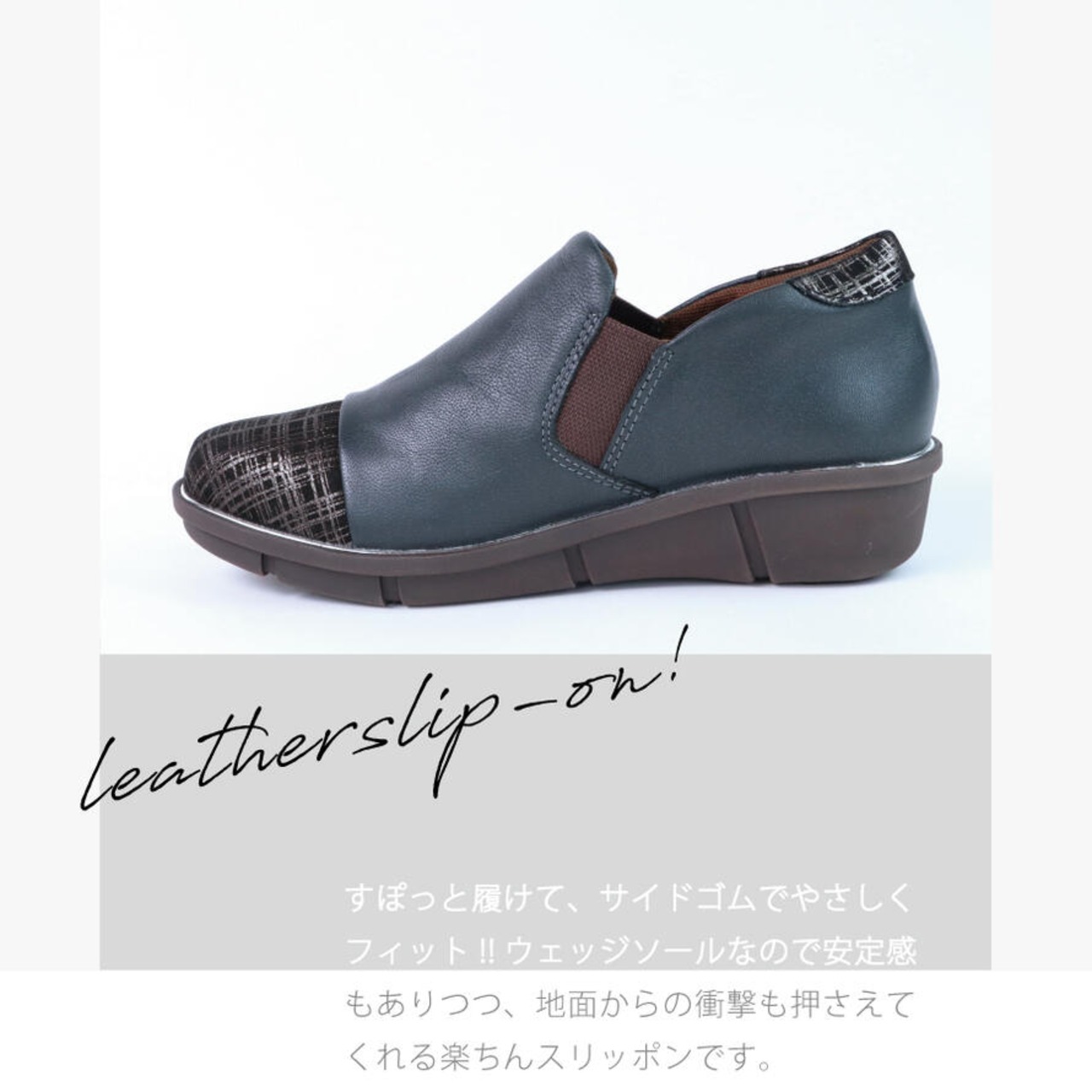シルバー ライン レザー スリッポン レディース 3cm ヒール3センチ 3E 軽量 黒 スニーカー 疲れない 厚底 本革 靴 シューズ