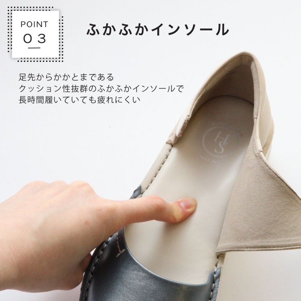 ・足先からかかとまであるクッション性抜群のふかふかインソールで長時間履いていても疲れにくい