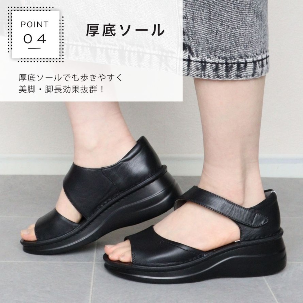 【本革】 サンダル レディース 厚底 ウェッジソール 疲れにくい ふかふかインソール 美脚 軽量 面ファスナー 調整可 本革レザー コンフォートサンダル 歩きやすい 厚底サンダル 本革サンダル カジュアルサンダル 旅行 靴 痛くない 幅広 甲高