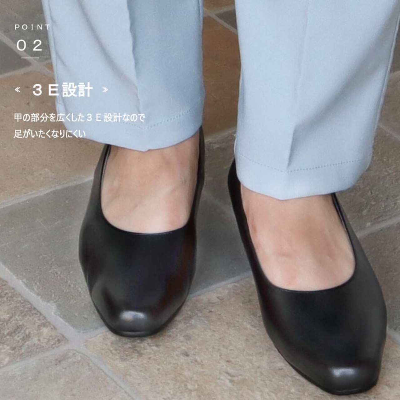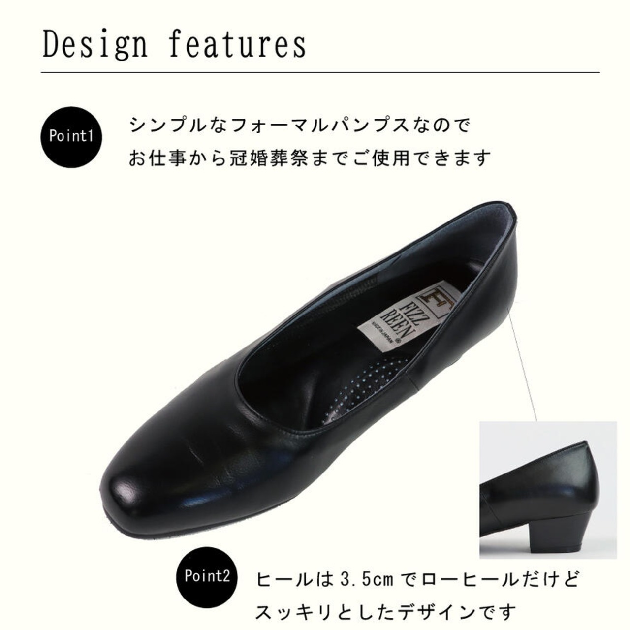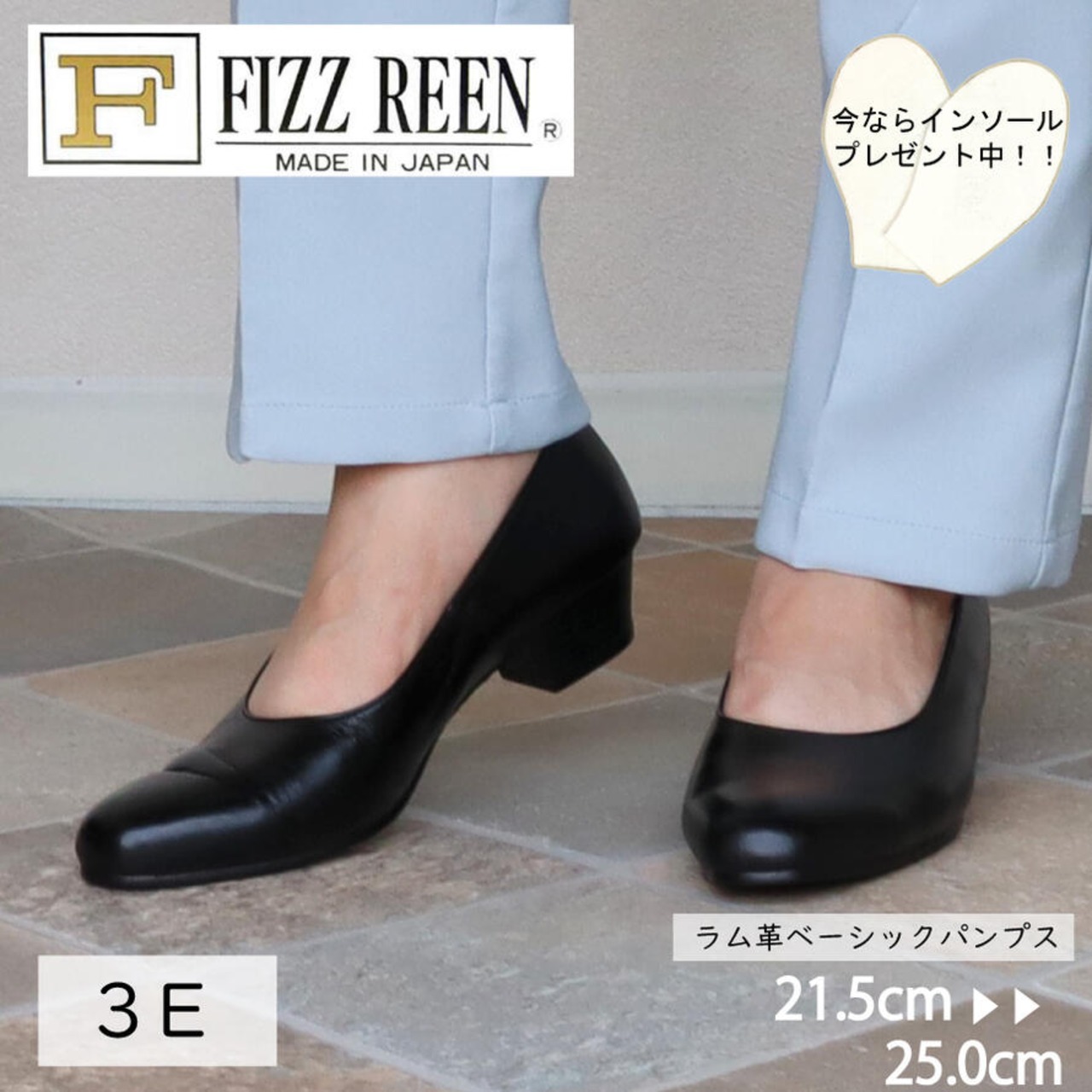 【FIZZ REEN】 ローヒール フォーマル パンプス 3E レザー 疲れない 本革 シンプル おしゃれ 靴 黒 ヒール 3センチ 50代 甲高 幅広 外反母趾 歩きやすい